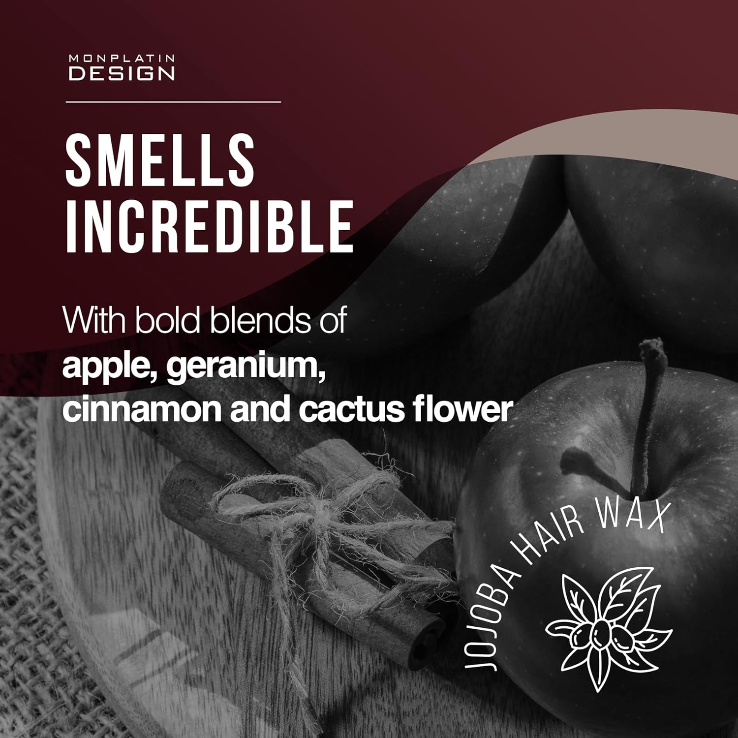 - WELL-BEING AND REFRESHMENT: Our Jojoba Hair Wax is suitable for all hair types, including thick and strong hair. It provides long-lasting moisture that penetrates your strands with every application. This scientifically-formulated wax combines jojoba extract and pure water, delivering a prolonged sense of moisture and a refreshing fragrance of a bold blend of apple, geranium, and cinnamon, with an infusion of cactus flower.