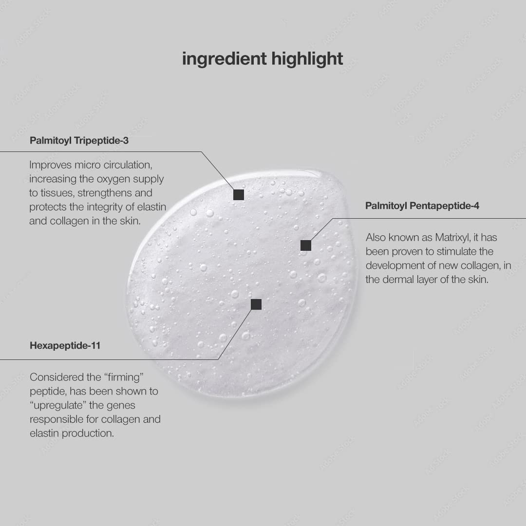 - COLLAGEN: We've packed three firming peptides into this serum that polish fine lines and plump up the surface. Peptides are highly absorbed proteins that help encourage the skin to produce collagen