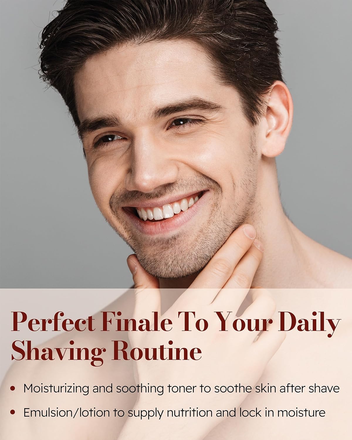The Character Set (11.5fl oz) - Daily Skincare Kit for Men's Skin Protection & Rejuvenation by LG Beauty. Toner, Emulsion with Woody Musk Scent.