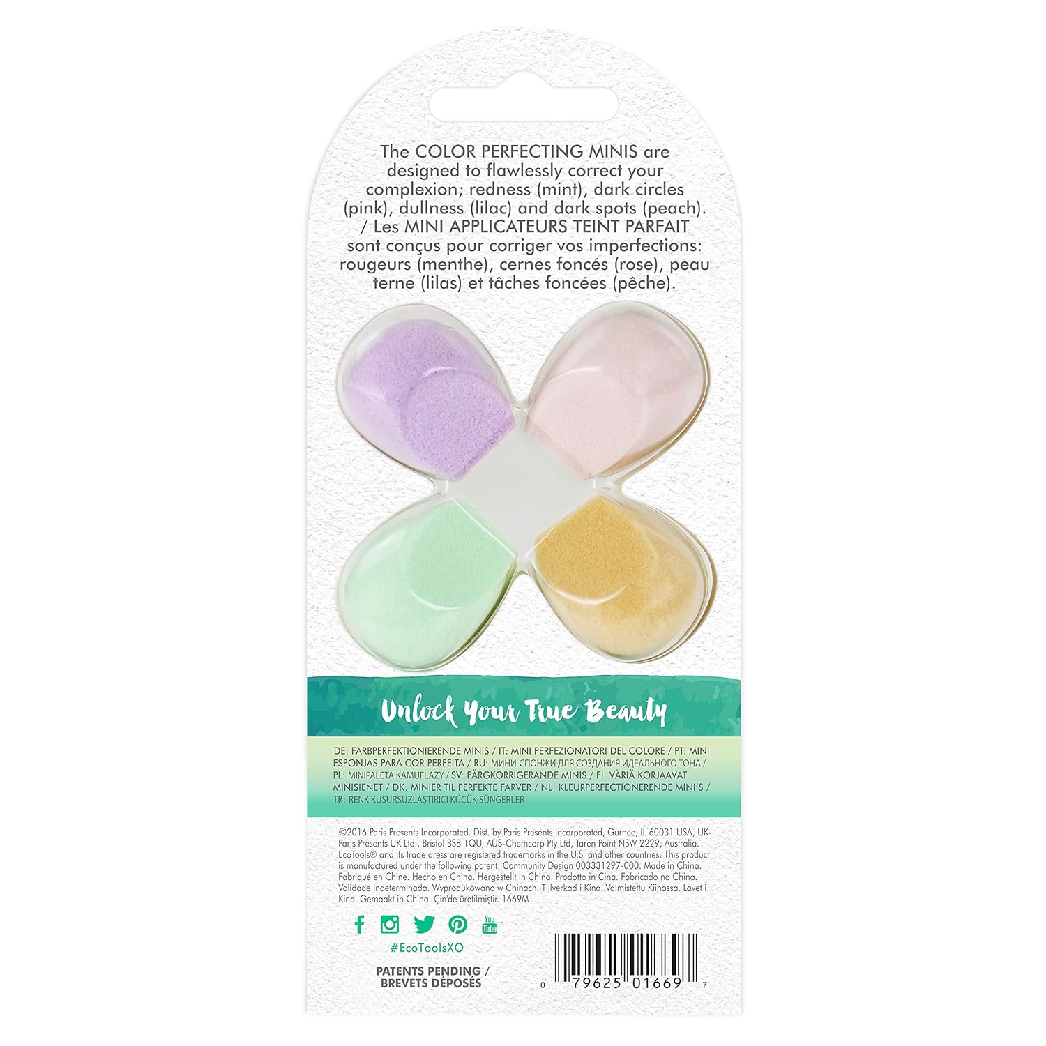 EcoTools Cruelty Free Color Perfecting Minis, Four Sponges Designed with Eco Foam Technology, a Unique Shape for Enhanced Precision, Purple, 4 Count