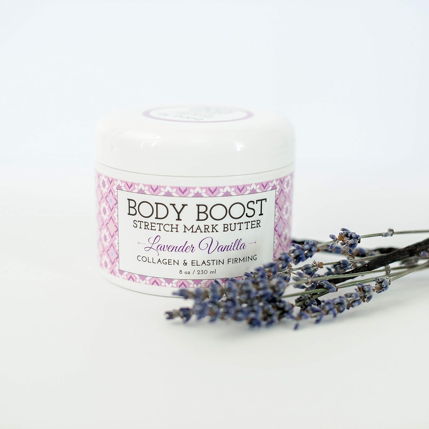 Body Boost Lavender Vanilla Stretch Mark Butter 8 oz.- Treat Stretch Marks and Scars- Pregnancy and Nursing Safe- with Shea Butter
