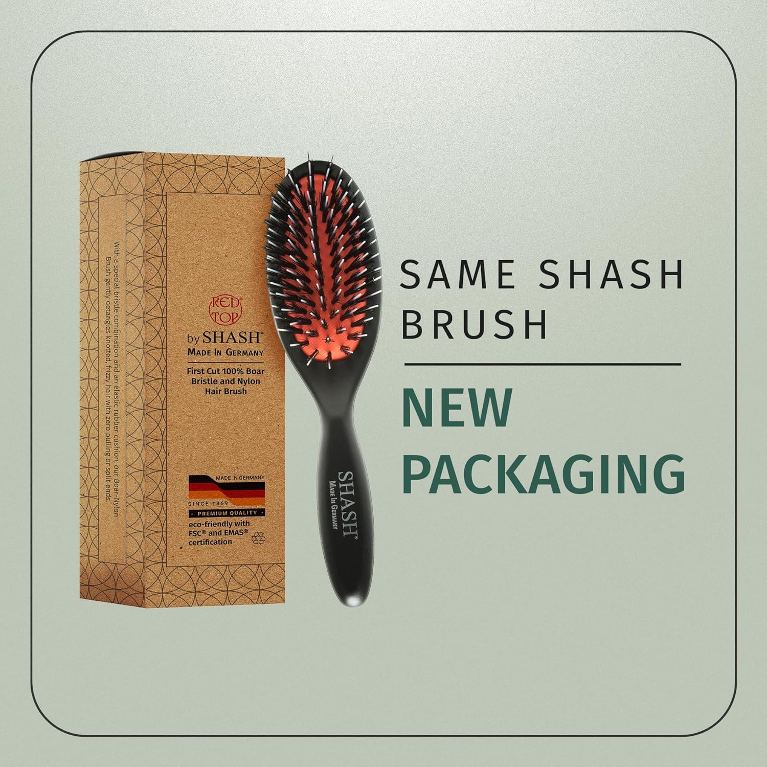 SHASH Since 1869 Hand Made In Germany - Nylon Boar Bristle Brush Suitable For Normal to Thick Hair Gently Detangles, No Pulling or Split Ends - Softens Improves Hair Texture, Stimulates (Extra Small)