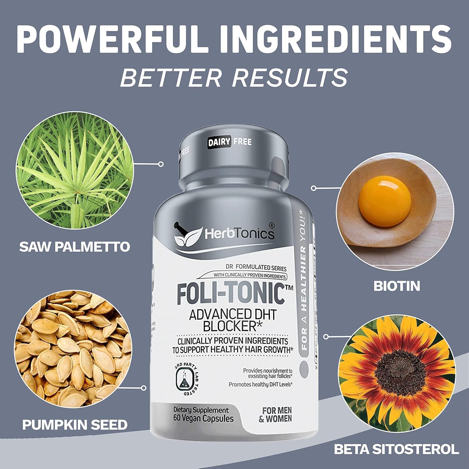 Hair Growth Vitamins for Women & Men | DHT Blocker with Saw Palmetto & 10000mcg Biotin, Foli Tonic Hair Growth Supplement – Supports Fuller, Thicker Hair Appearance, Non-GMO, 60 Vegan Capsules