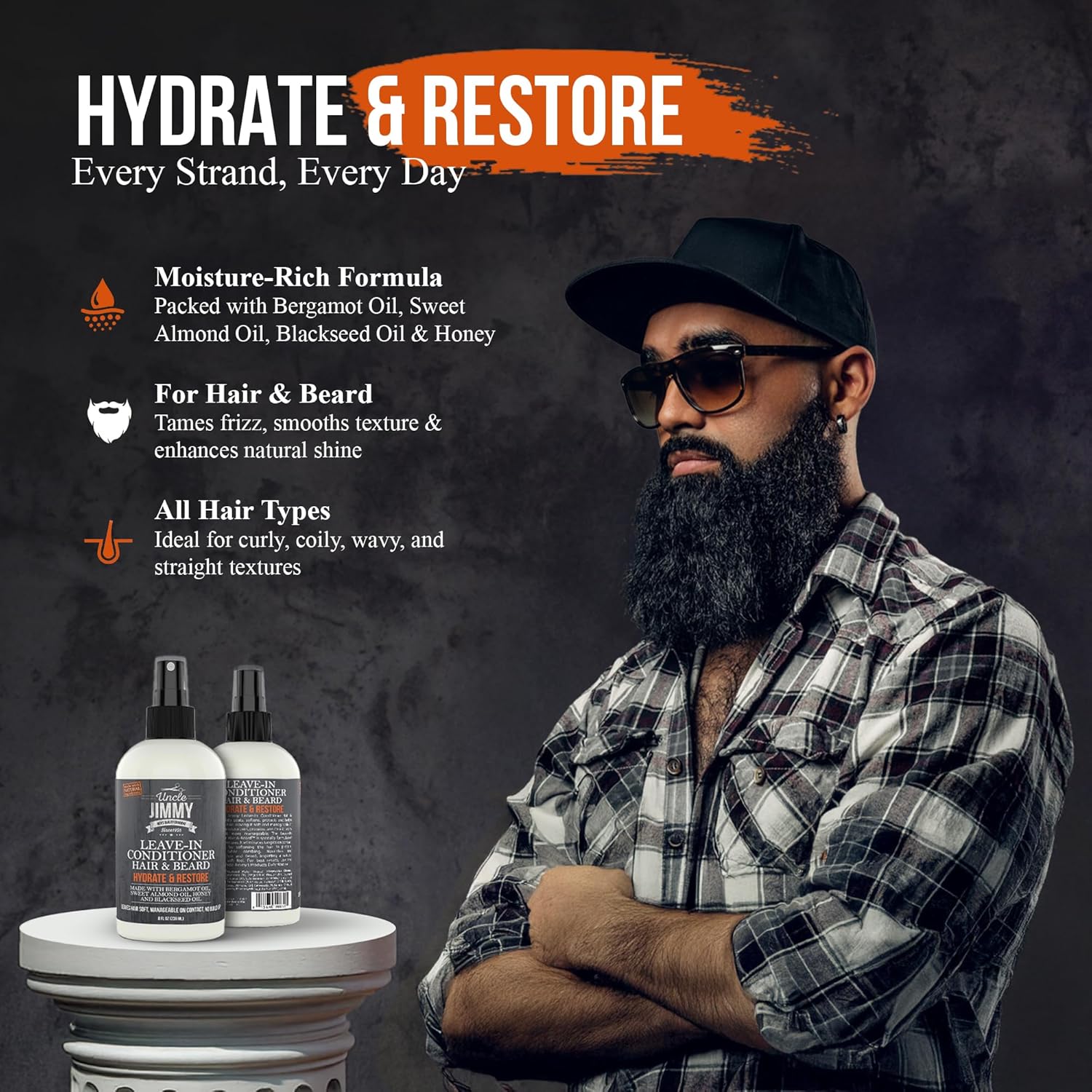 Uncle Jimmy Products Leave-In Conditioner for Healthy Beard Growth, Softening Hair, Hydrating Skin, and Eliminating Dandruff - 8 Fl Oz