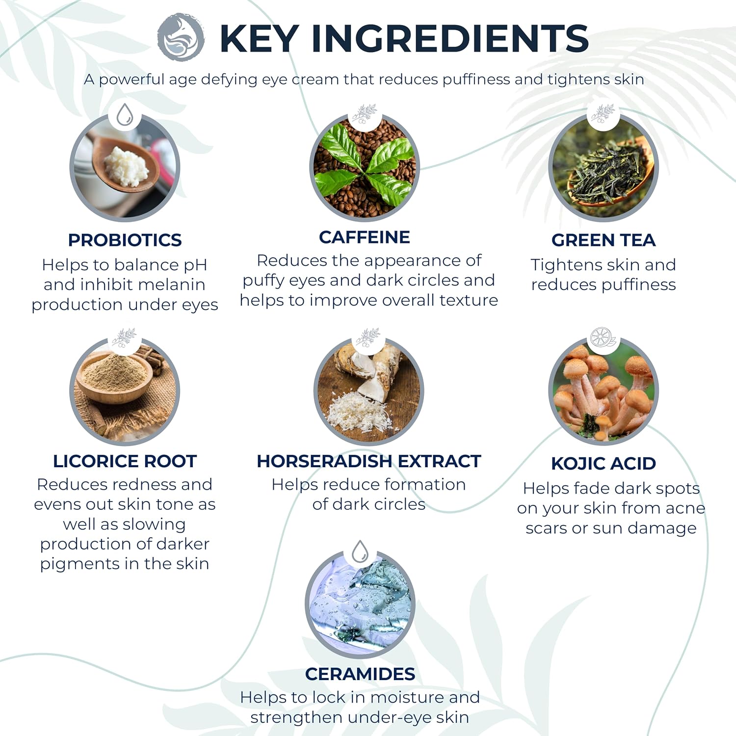 Probiotic Eye Cream with Caffeine for Dark Circles, Puffiness & Wrinkles - Luxury 28-Botanical Formula with Ceramides - Targets Under Eye Bags, Fine Lines & Crow's Feet - USA Made 0.5oz