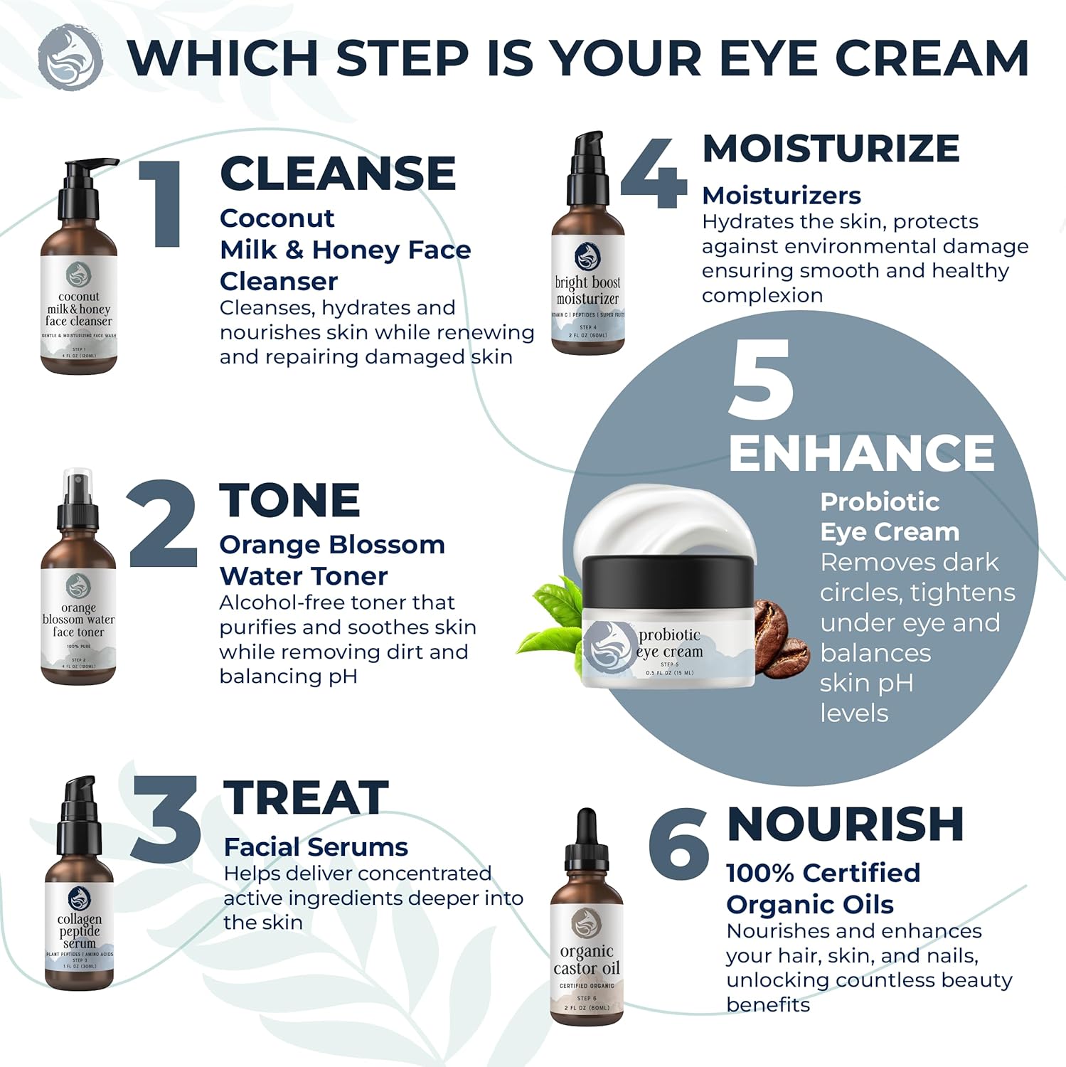 - ADVANCED PROBIOTIC COMPLEX: Our signature topical formula combines Lactobacillus Ferment probiotics with 28 botanical actives — a concentration rarely found at any price point. This premium under eye cream for women and men helps restore your skin's protective barrier while visibly reducing the appearance of dark circles, bags under eyes, and crow’s feet. Small-batch crafted in the USA to ensure maximum ingredient integrity.