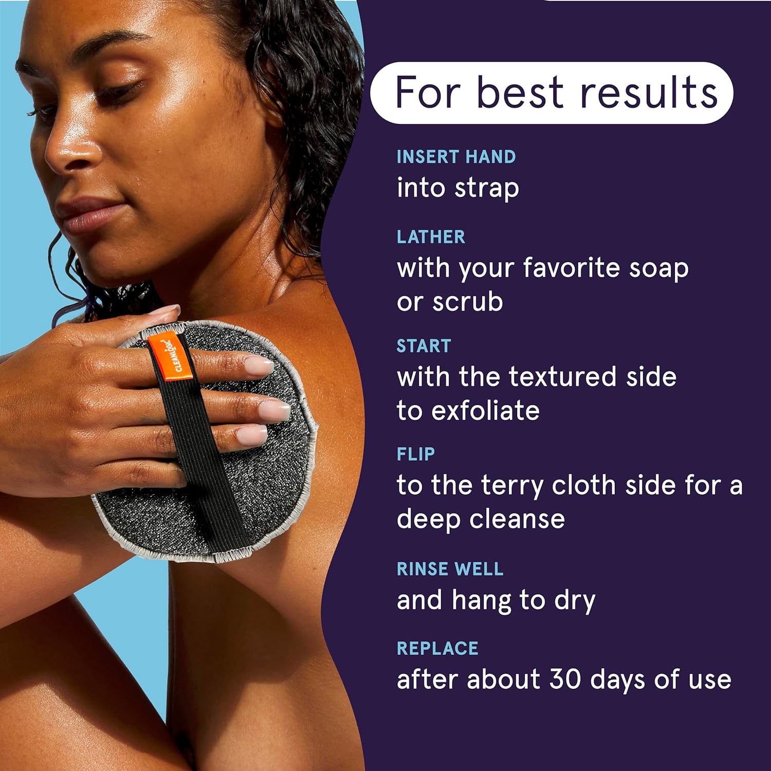 - Easy-to-Use Large Body Scrub: Gently massage your body in circular motions with this body scrubber exfoliator to remove the dry and dead skin cells blocking your pores. Do not be too rough or press too hard as it could irritate the skin