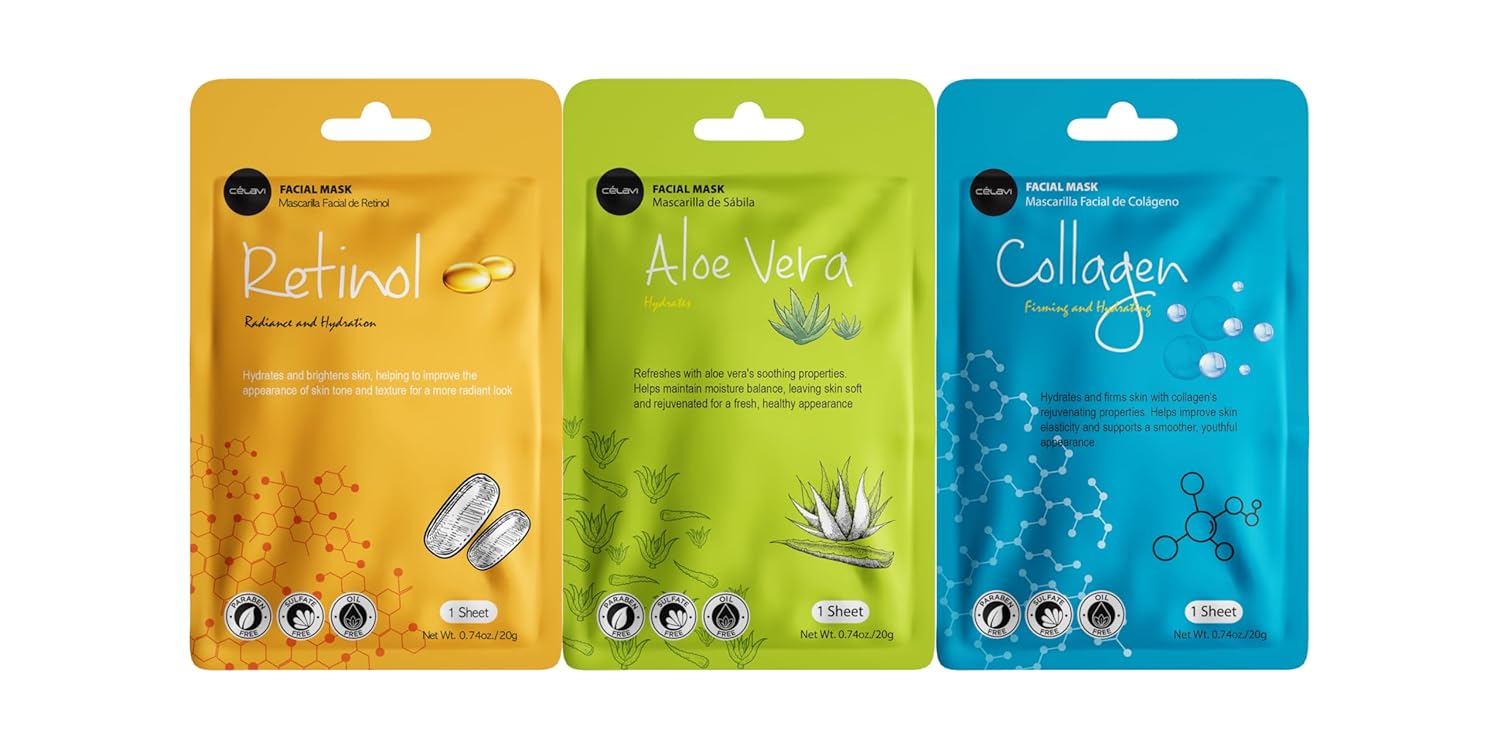 - 12 Pack Includes - Coconut (2), Hyaluronic Acid (2), Retinol (2), Aloe Vera (2), Collagen (2), Ginseng (2)