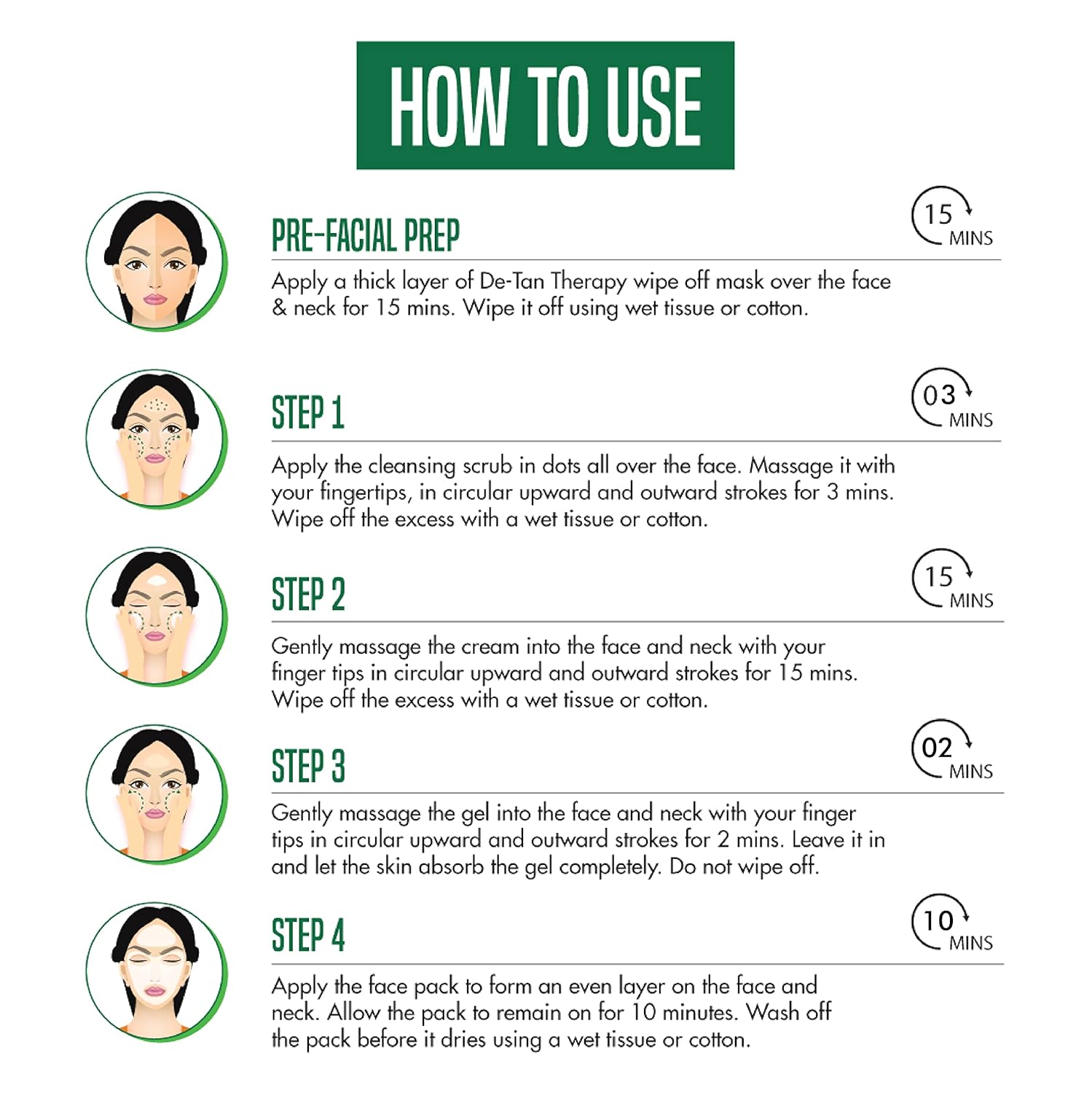 - 1. Pre-Facial Prep - De-Tan Therapy Wipe Off Mask (15 ML) - A wipe off mask that removes all types of tan .