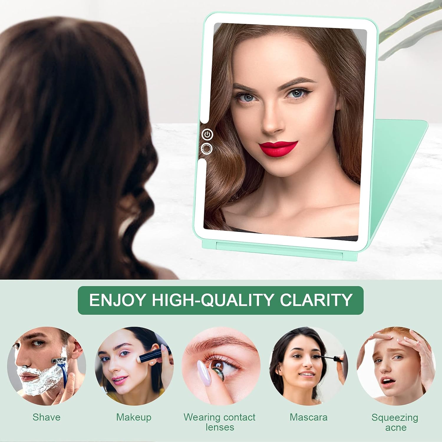 - 【 Rechargeable Illuminated Mirror 】- Built-in 1800mAh lithium battery, connect a laptop, charger or mobile power supply via Micro USB for charging, no worry about replacing batteries. Compact, lightweight, ultra thin and foldable, you can easily put it in your backpack and suitcase, fitting for home, travel or working use.