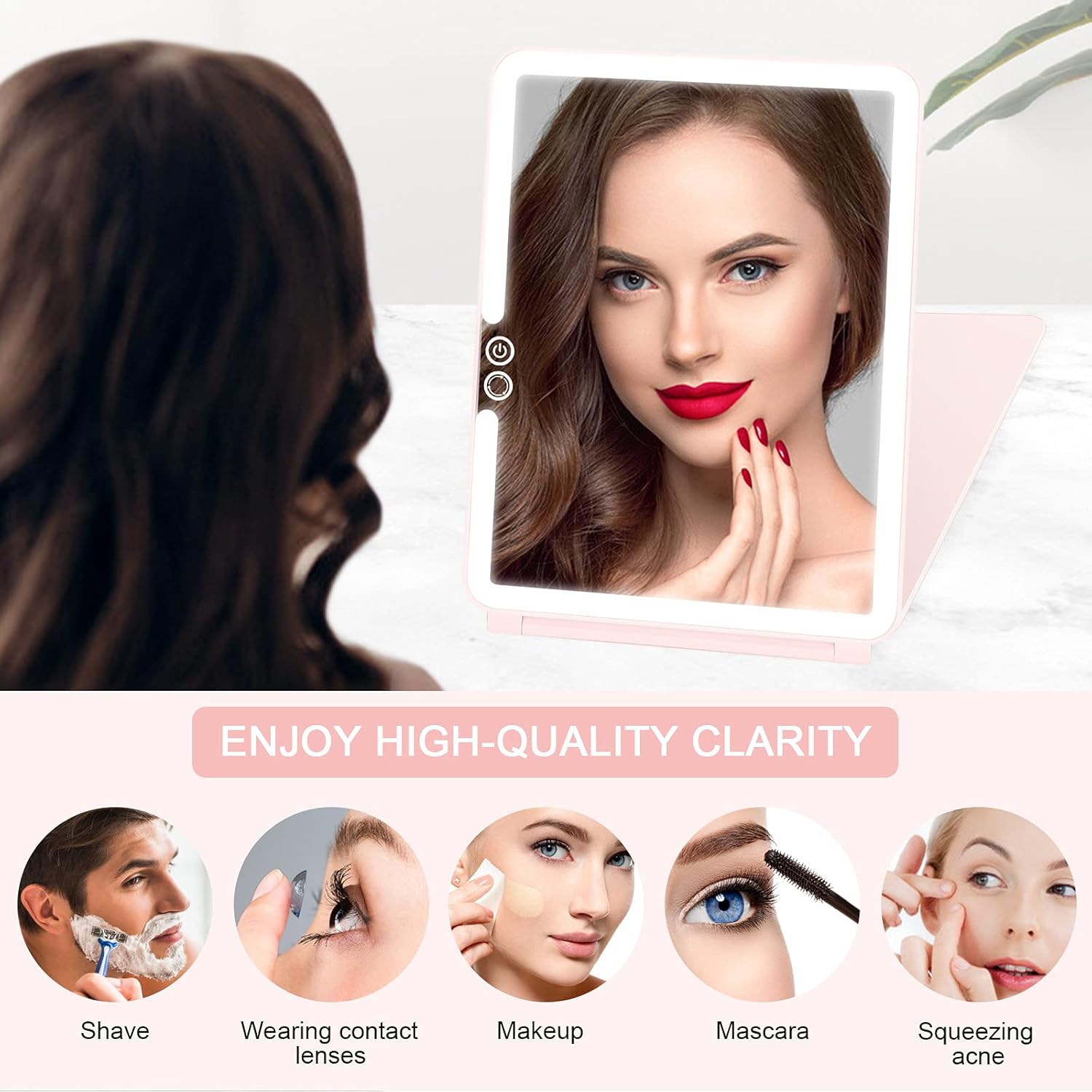 - 【 Rechargeable Illuminated Mirror 】- Built-in 1800mAh lithium battery, connect a laptop, charger or mobile power supply via Micro USB for charging, no worry about replacing batteries. Compact, lightweight, ultra thin and foldable, you can easily put it in your backpack and suitcase, fitting for home, travel or working use.