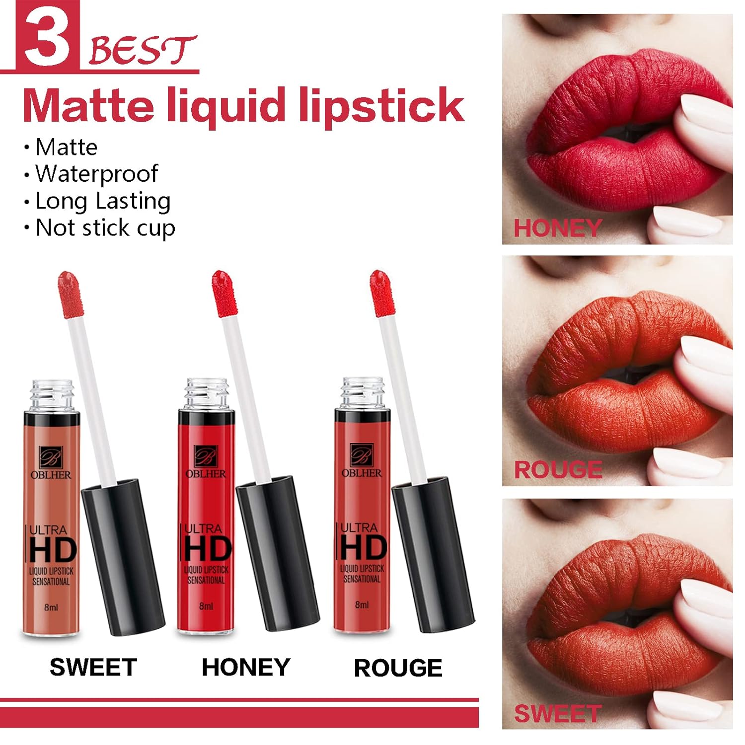 - 【LUSTROUS & CRUELTY-FREE】The original 3pcs red-toned lipstick set,with supremely comfortable matte formula and soft creamy texture glides on effortlessly and covers evenly as a liquid and dries down to a luxurious, velvety finish that lasts for hours. Vegan and not tested on animals.