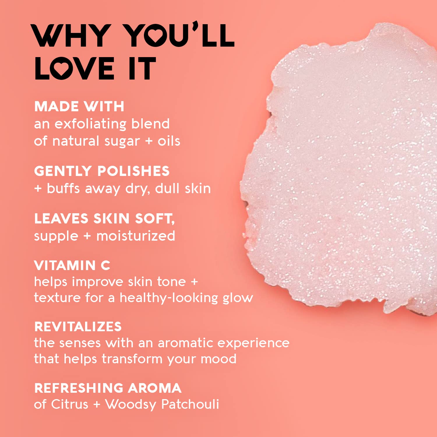 - Gently Exfoliate: Natural sugar buffs away dead skin; helps promote a radiant glow
