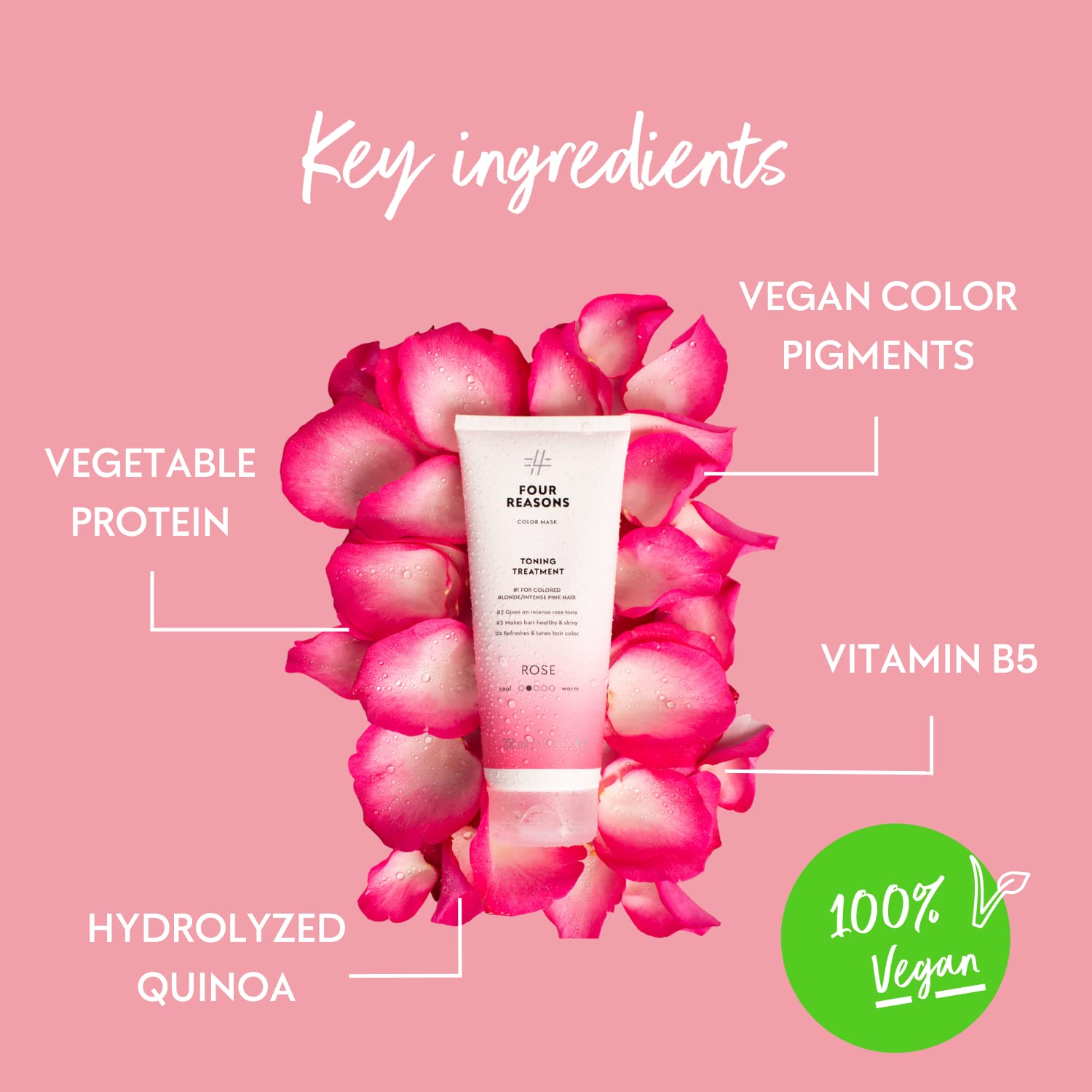 - UNIQUE FORMULA: Unlike other color depositing conditioners, Color Mask Rose Toning Treatment gives your hair strength and nourishment with the help of plant-based proteins and amino acids. The end result is healthy hair with a vibrant blaze of color.
