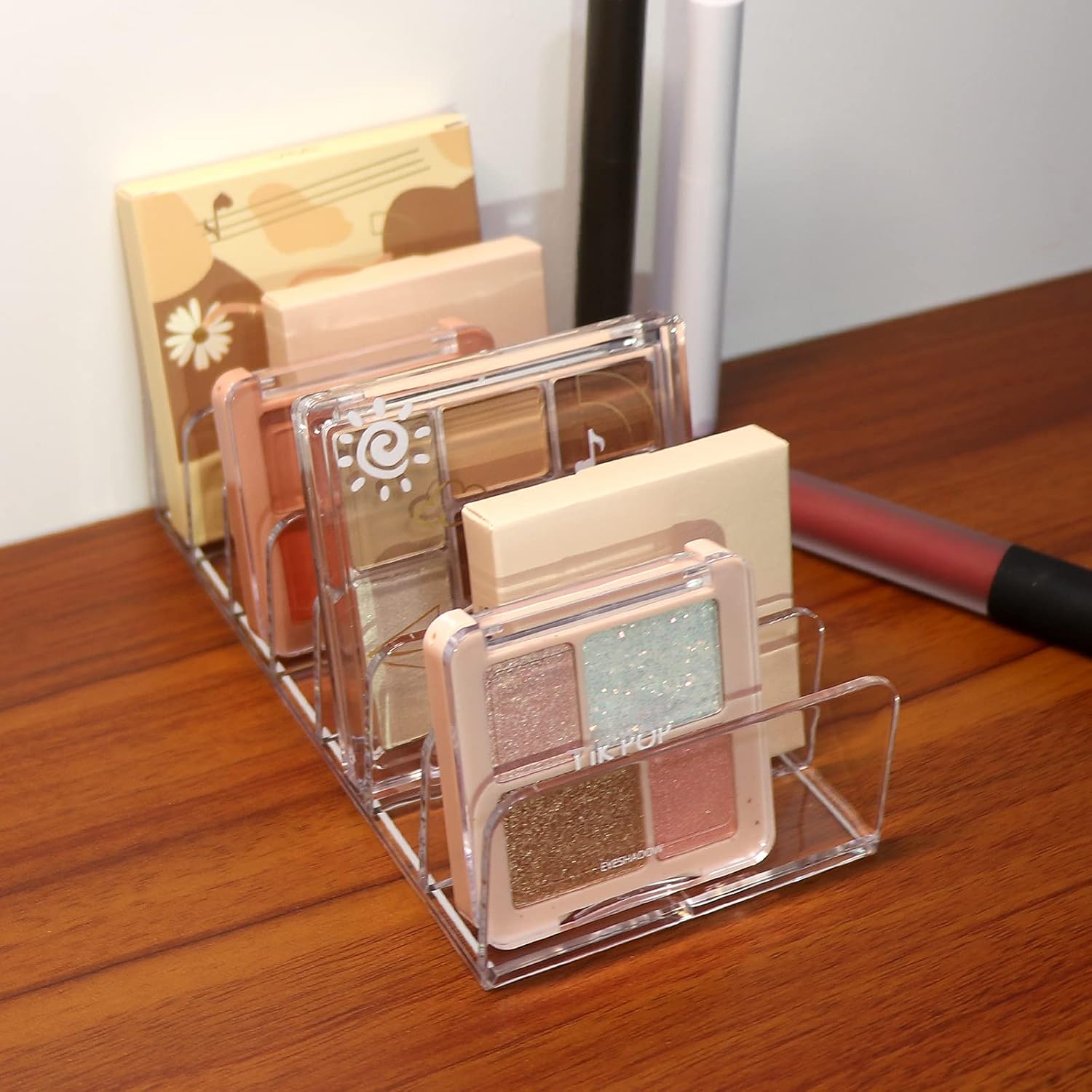 - ăSits Vertically Or HorizontallyăMade for makeup lovers, makeup artists and teenagers, this functional makeup pallet organizer is a great addition to any vanity or bathroom countertops. Designed to stand upright on your counter or lay flat inside your makeup drawer, leaving a smaller footprint.