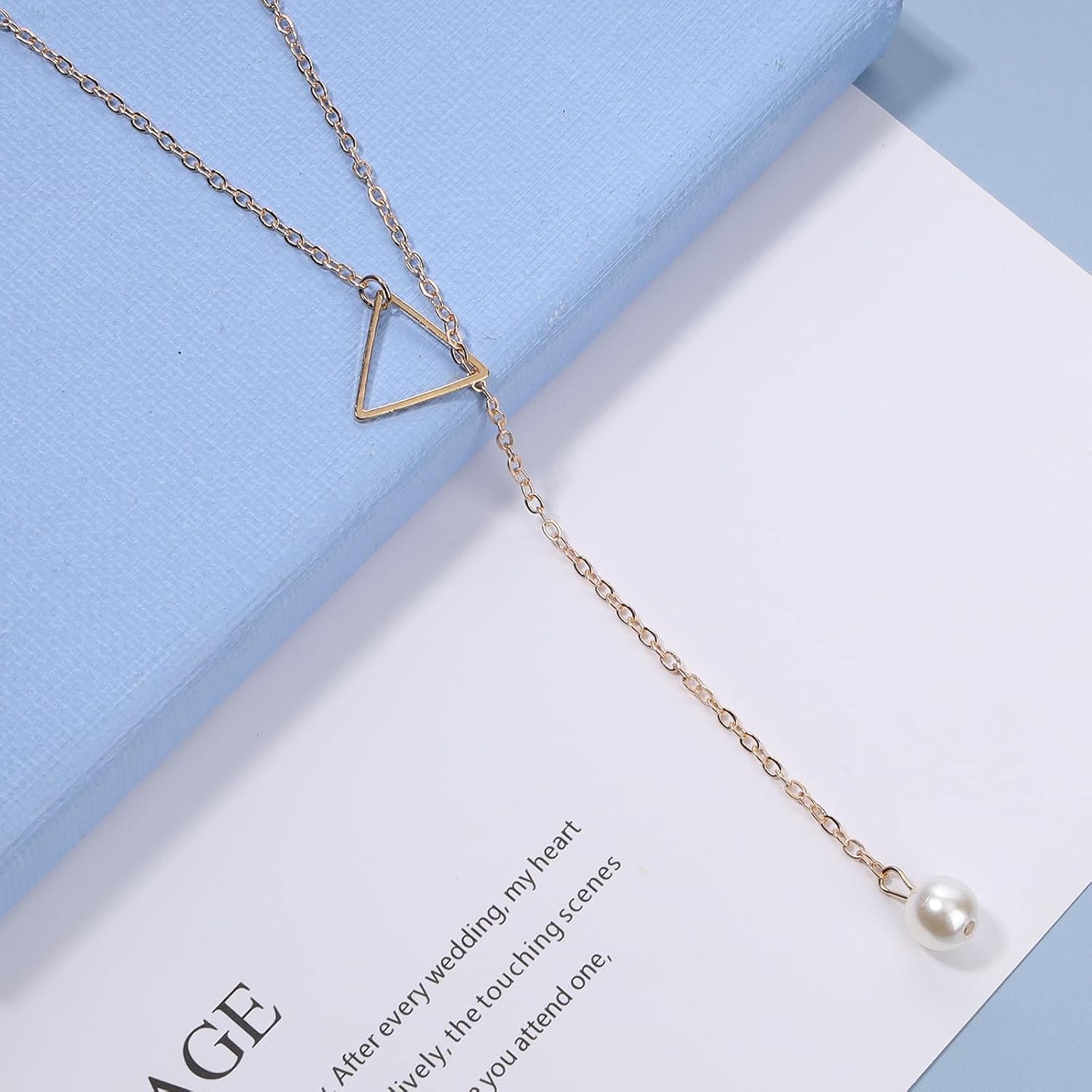 Boho Pearl Triangle Necklace Gold Y Pearl Necklace Minimalist Y Lariat Necklace Geometry Chain Jewelry for Women and Girls