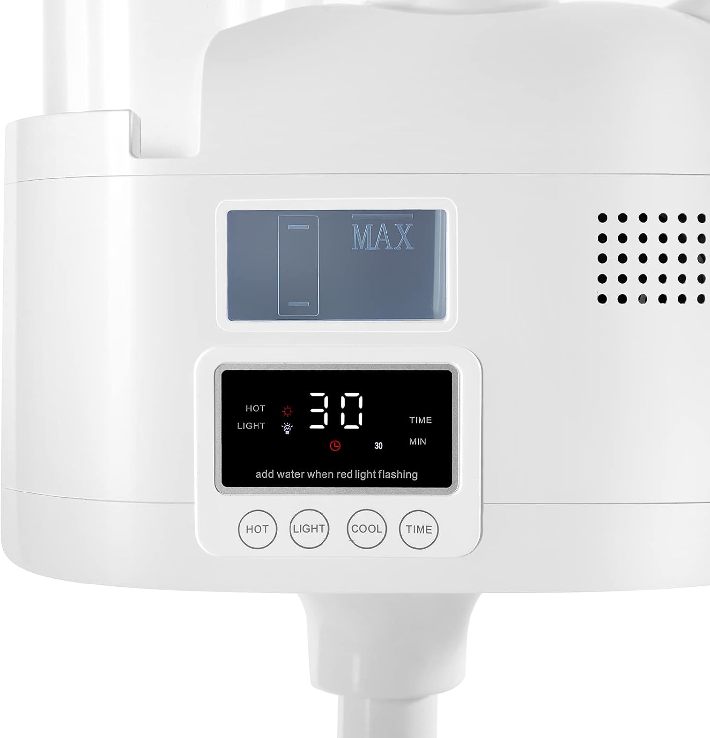 - ROTARY AND MOVEABLE - 360 degree rotary spray pipe allows to moisturize your face when you are sitting or lying; Rolling wheels makes it convenient to move this facial skin care machine around the room