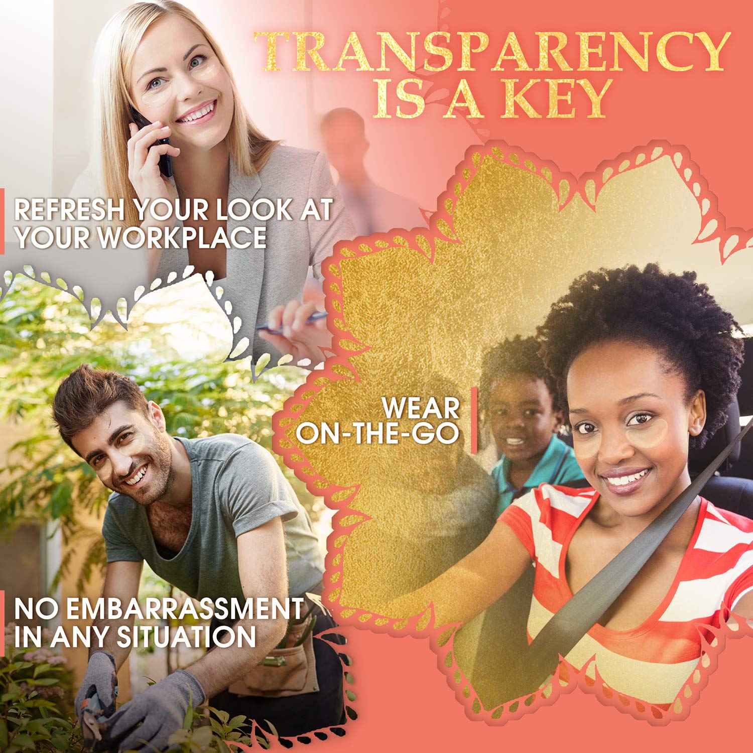 - ON-THE-GO UNDER EYE MASKS - Being TRANSPARENT, our under eye mask for puffy eyes can be worn during driving or at work, and NON-SLIP design holds well while you finish chores or play sports!