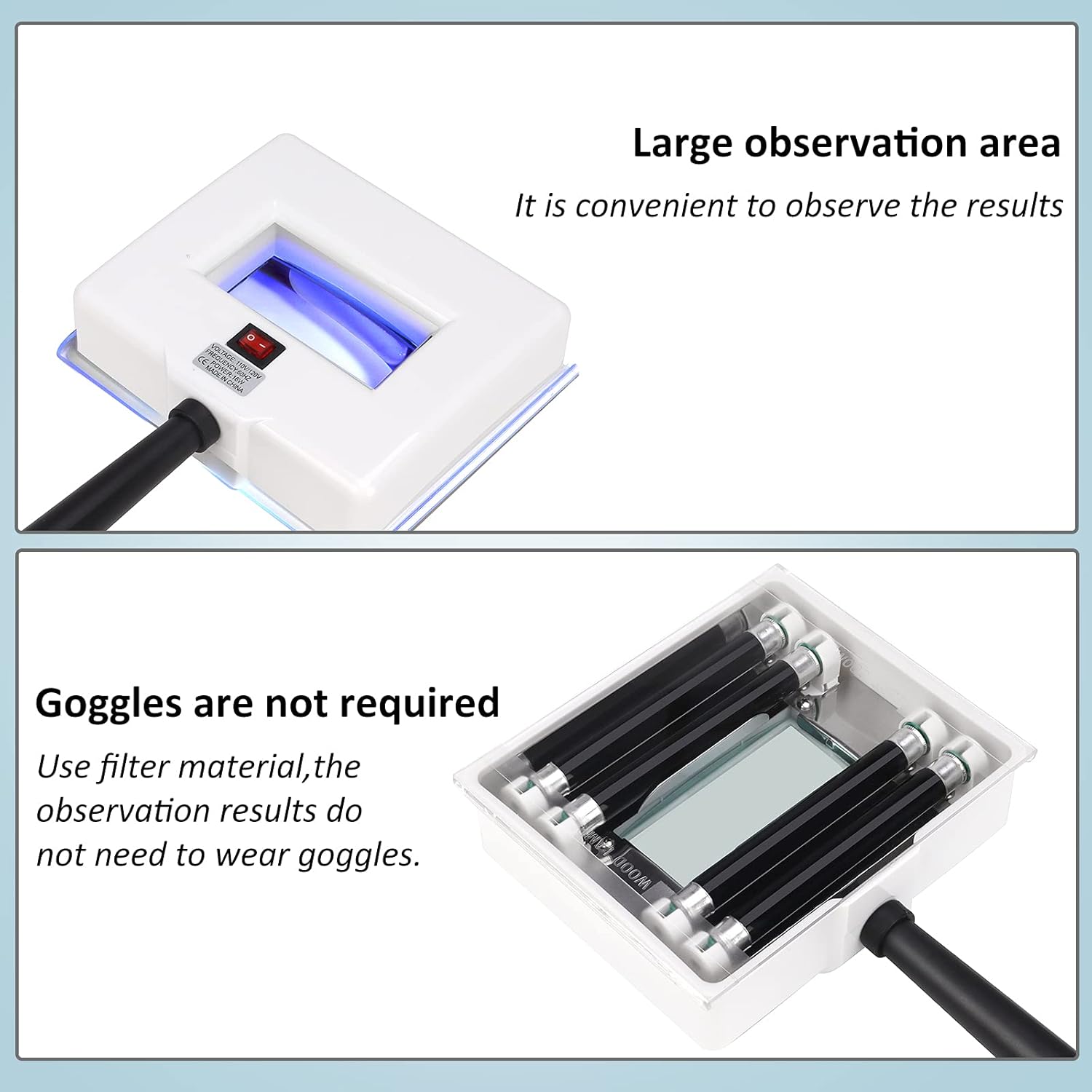 - 【Widely Use】This instrument can be used not only for skin condition detection but also for skincare products containing fluorescent agents and pet fungi detection. One machine with multiple functions, large observation area, quick detection in one step
