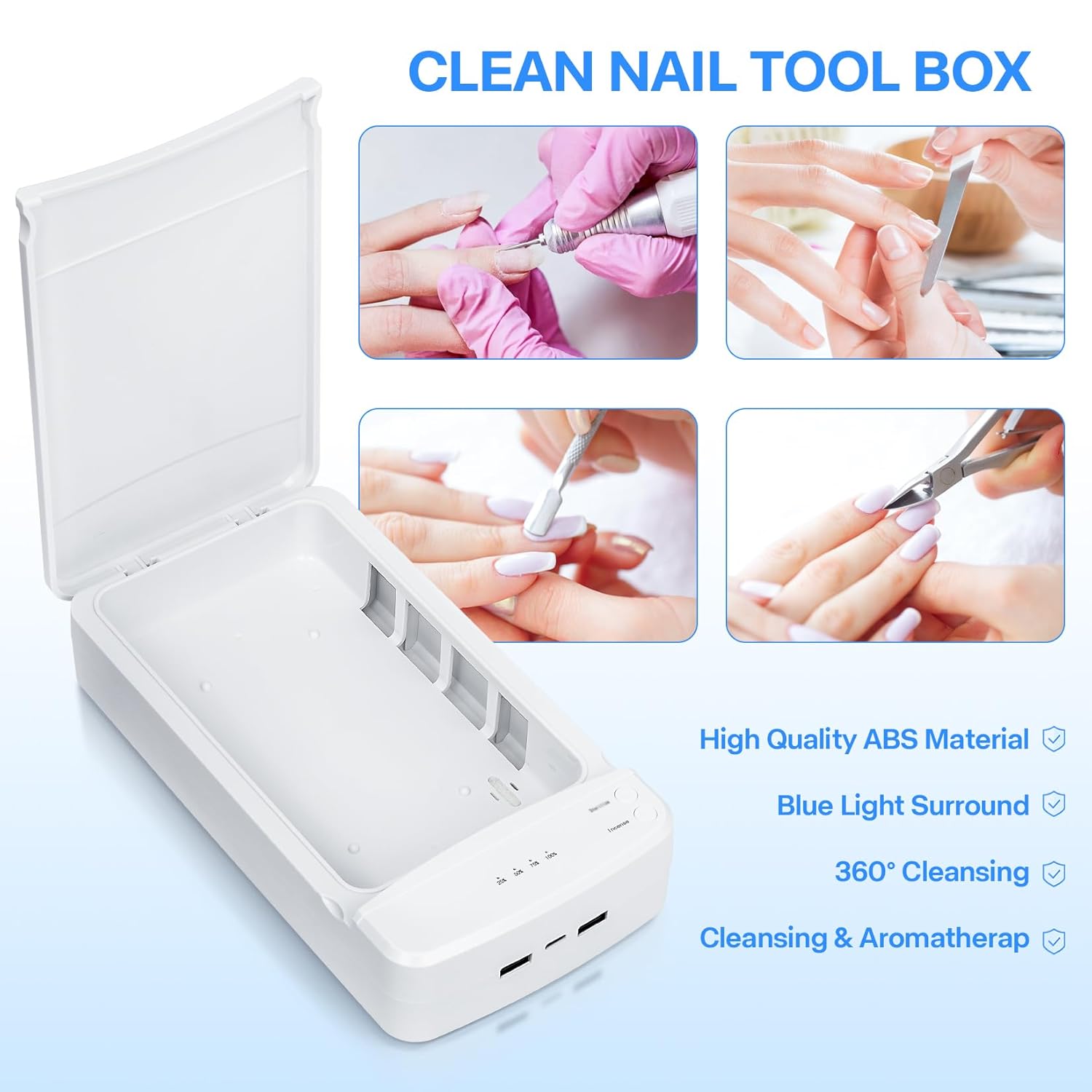 - Durable Material:The blue light nail tool cleaner is made of high-quality ABS plastic material, which is sturdy.You can place this nail tool cleaner anywhere,and clean your tools anytime. Is an ideal beauty tattoo tools sterilizer for salon and home use.