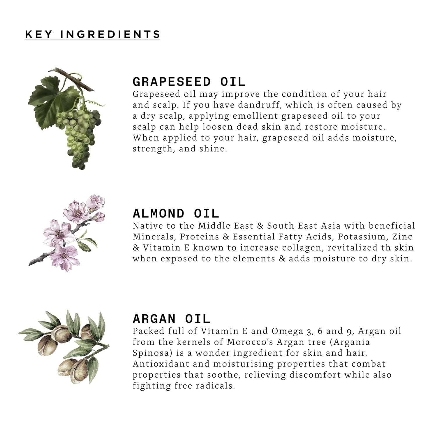 - ALL NATURAL INGREDIENTS | Our Johnny B ‘good oil’ is infused with Jojoba, Argan, Grapeseed, and Sweet Almond oils to equally calm the skin and nourish hair follicles - this defines the term 'Classic beard oil' whilst being as good as any skin oil on the market.