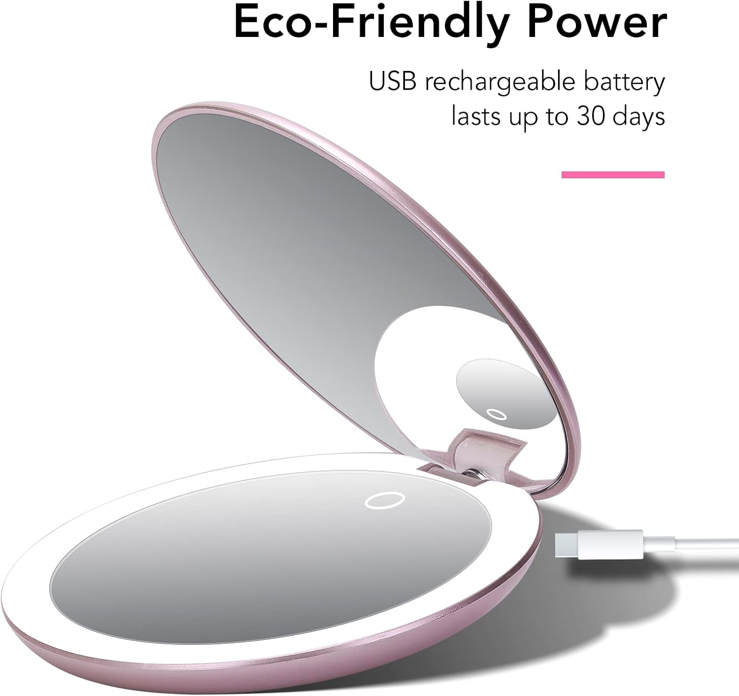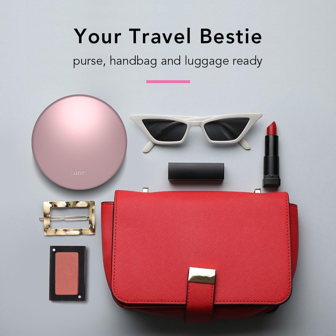 - Fancii Led Lighted Travel Makeup Mirror, Rechargeable With 10x/1x Magnifying & 3 Light Settings - Compact, Portable, Large 5” Wide Hand Mirror for Handbag and Purses (Rose Gold)