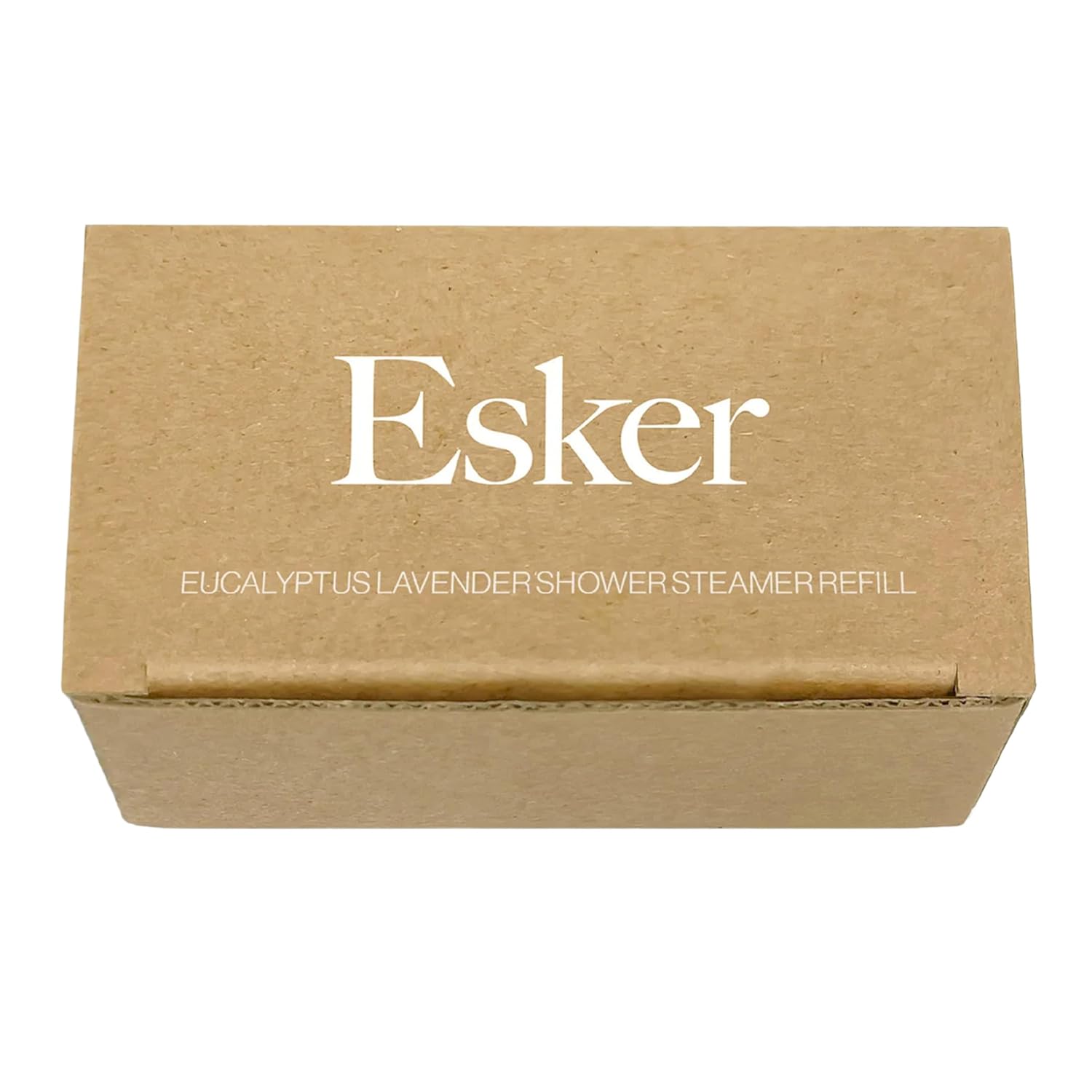 - Shower Experience: Elevate your shower experience with Esker's Shower Steamer Refill in Lavender Eucalyptus. These all-natural tablets, steam, and water-activated, release refreshing essential oils and minerals into the vapor, turning your shower into a daily ritual.