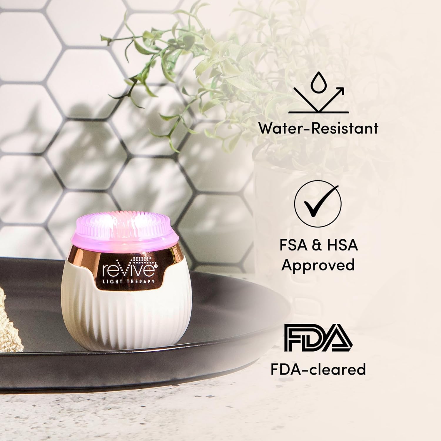 Revive Light Therapy Lux Collection Soniqué Mini, Rechargeable Sonic Face Cleanser Brush with Medical-Grade Blue & Red Light Therapy for Face, Acne & Wrinkle Care, Water-Resistant