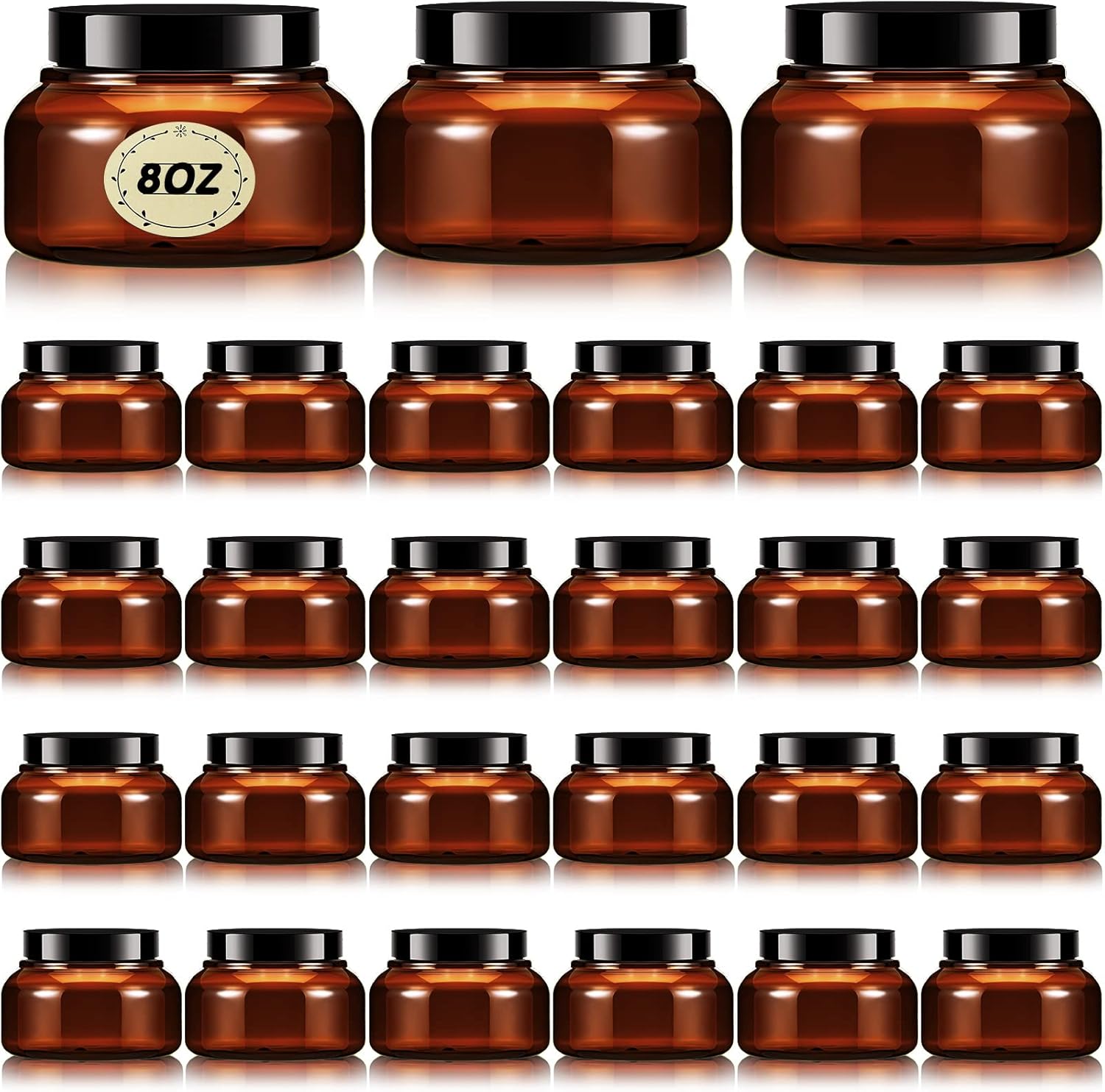 Tessco 24 Pack Plastic Jars with Lids Labels Empty Clear Plastic Jars Round Refillable Cosmetic Containers Body Butter Containers Bulk Sugar Scrub Bottle for Make Up(8 oz,Brown)