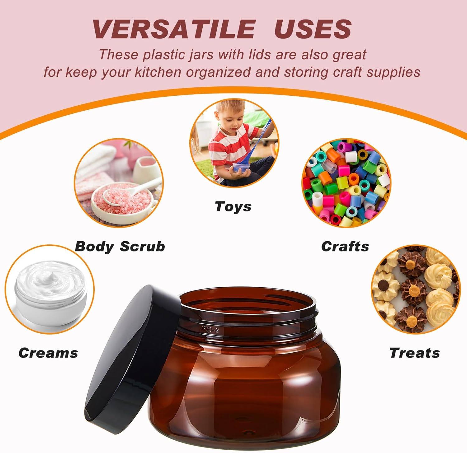 - Wide Application: these small jars with lids are not only suitable for storing cosmetics, lotions, body butter, but also dry food, nuts, spices, flour, sugar and other foods to keep them fresh, you can put them in the dressing table, bathroom, bedroom or kitchen, and open them when you need