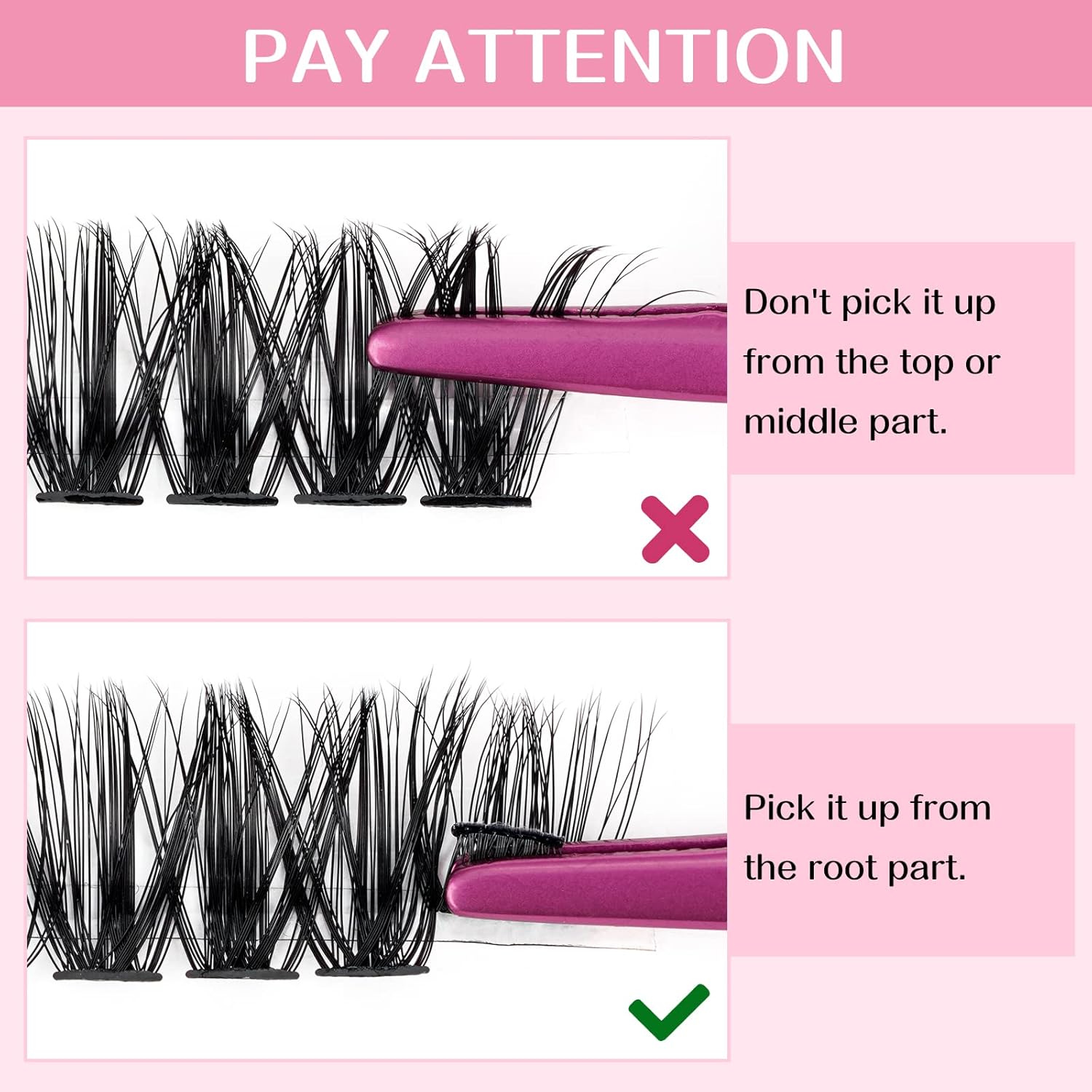 - Natural Like Your Own Lashes: Two different styles of C-curl and D-curl lash clusters and a variety of lash lengths can help you easily achieve a natural or dramatic look. In addition, they can be removed cleanly by the adhesive remover without any worries at all.