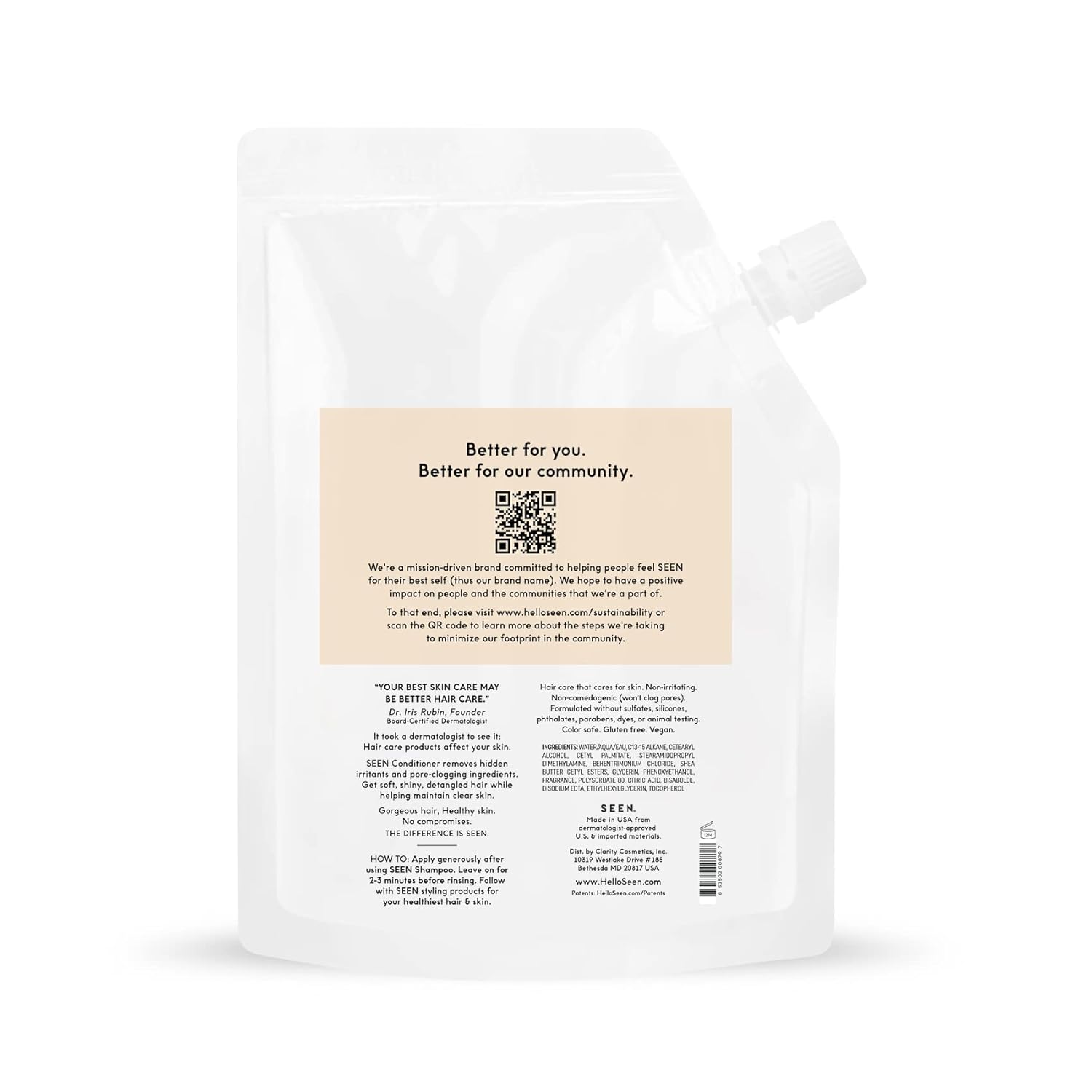 SEEN Conditioner Eco-Refill - Scented- Non-Comedogenic & Sulfate-Free Hair Conditioner- Dermatologist-Developed -Safe for Sensitive & Acne Prone Skin
