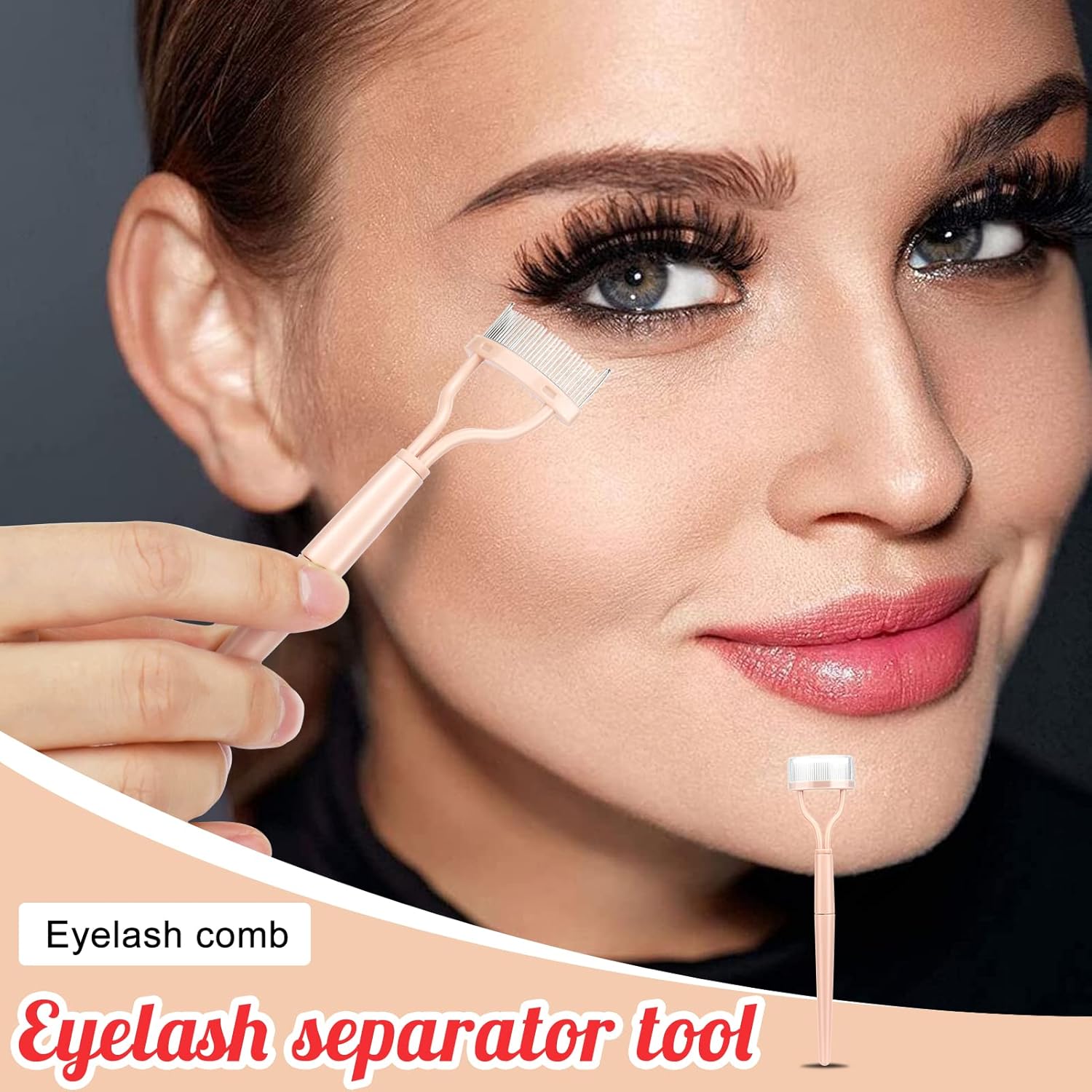 Juome 4 in 1 Eyelash Applicator Tool Kit, False Lash Clip Applicator Portable Eyelash Curlers Eyelash Separator Tool Mascara Comb Lash Buddy Set for Women Girls