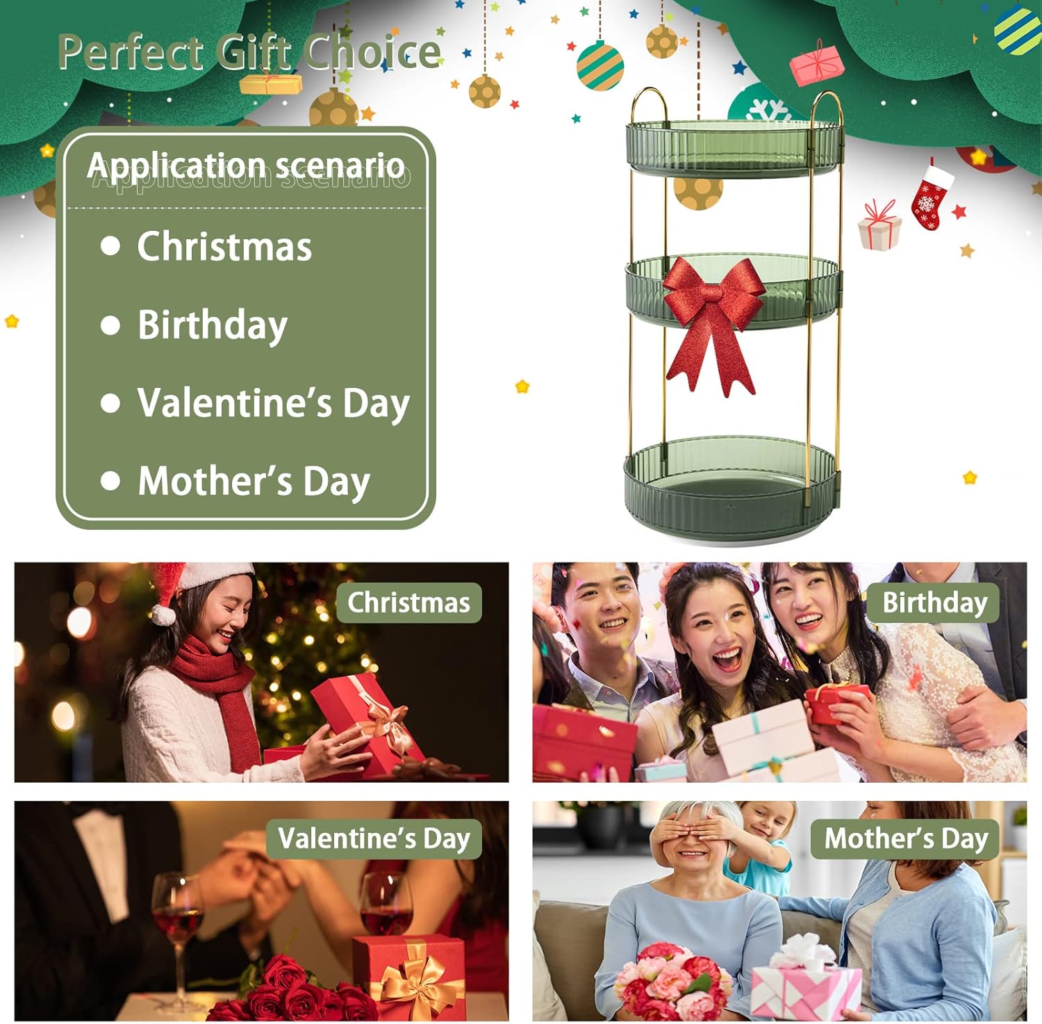 Rotating Makeup Organizer for Vanity, High-Capacity Skincare Clear Make Up Storage Perfume Organizers Cosmetic Dresser Organizer Countertop 360 Spinning (Green, 3 Tier)