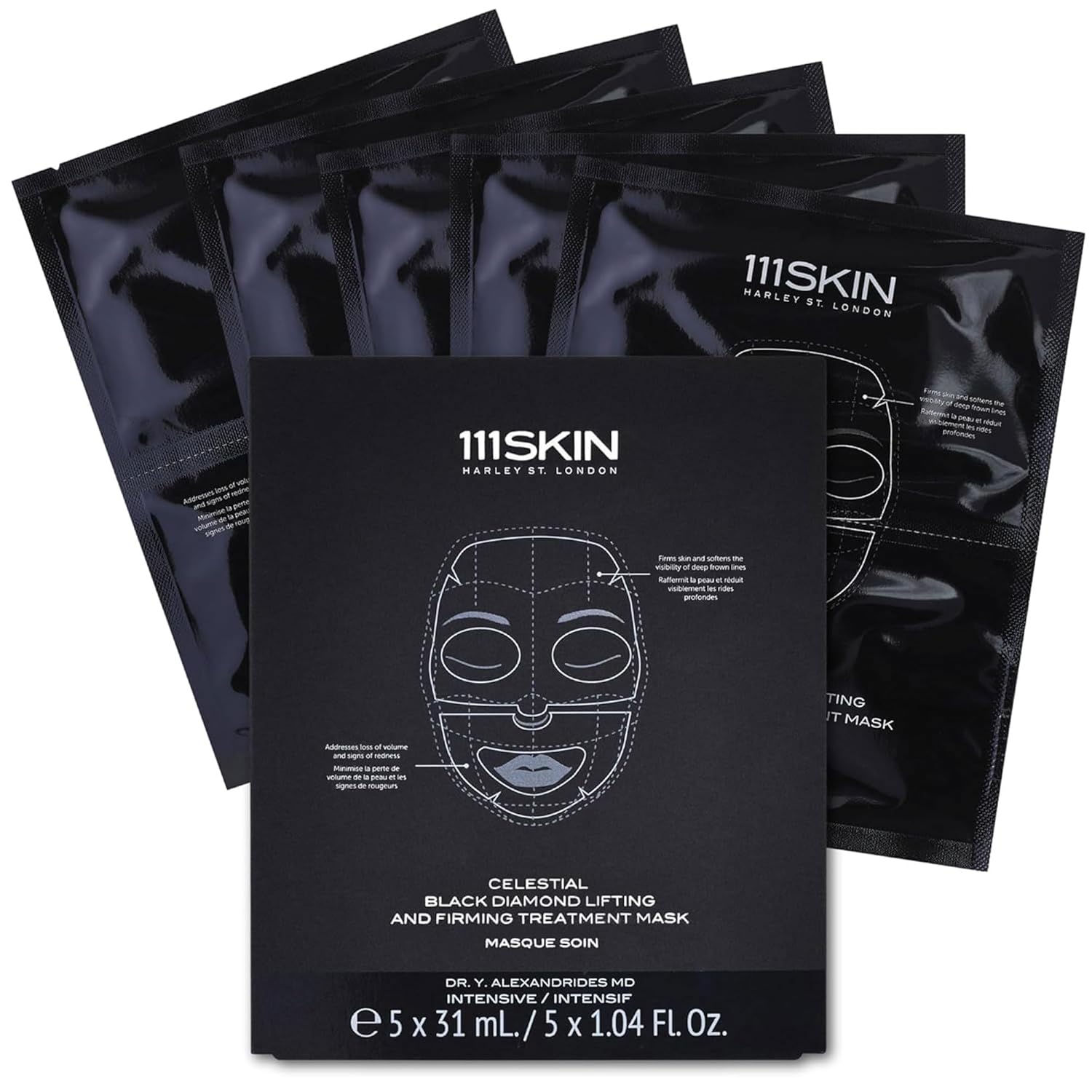 111SKIN Celestial Black Diamond Lifting and Firming Treatment Mask - Anti-Aging - Tone, Tighten, Retexturize Complexion - Fragrance Free - Set of 5 (2.5 oz each) - Face Mask
