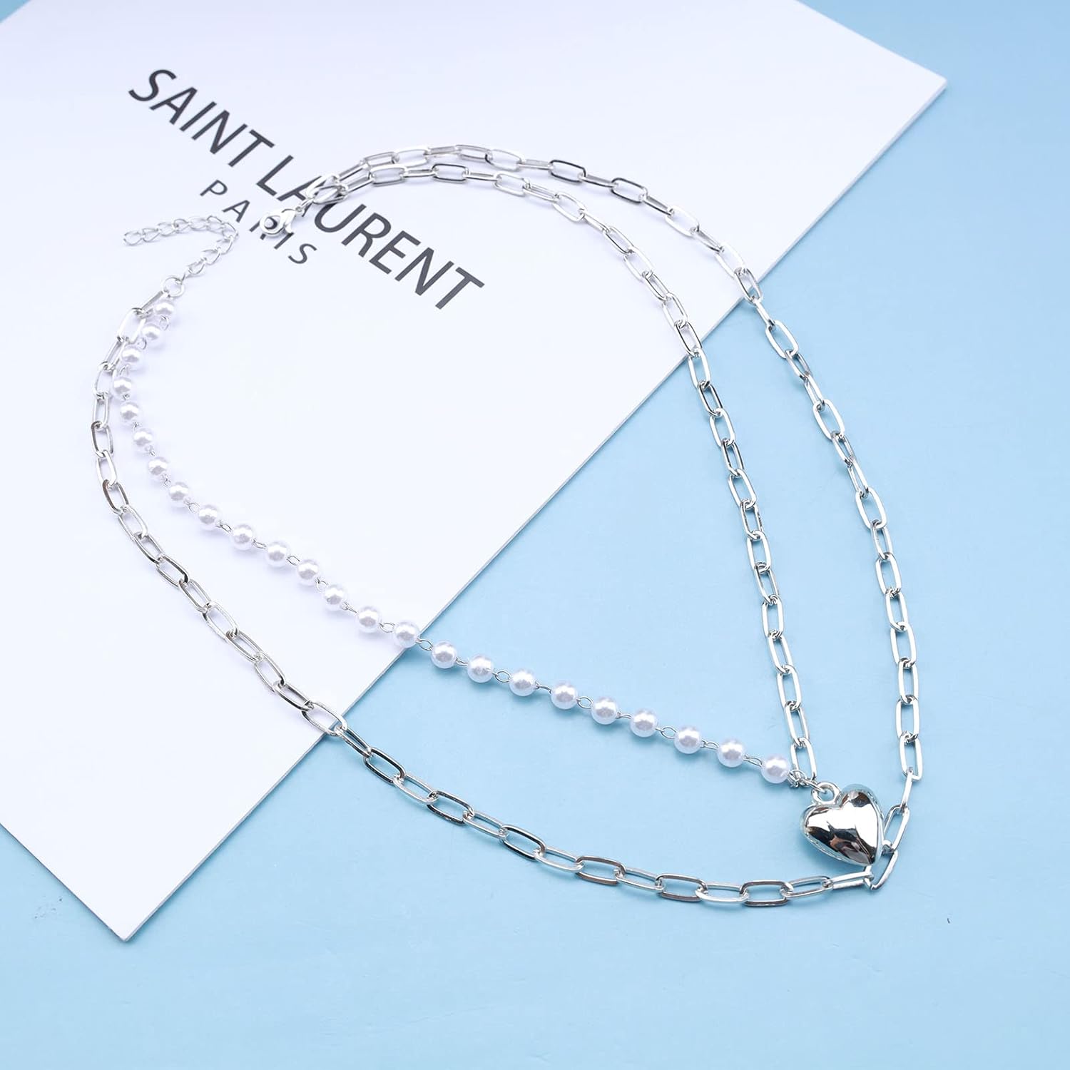 - 【Exquisite and Simple】The series of multi-layered pearl necklaces are interlocked by chains and love pendants, which perfectly highlights the beauty of this jewelry.
