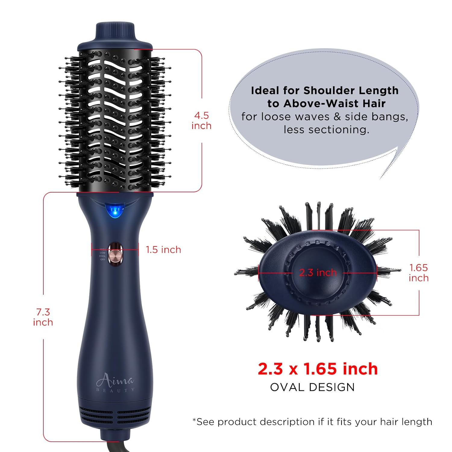 One Step Hair Dryer & Volumizing Brush, Aima Beauty Hair Styling Tool - Ceramic Straightener, Curler, Hot Air Styler & Ionic Salon Brush, Prussian Blue