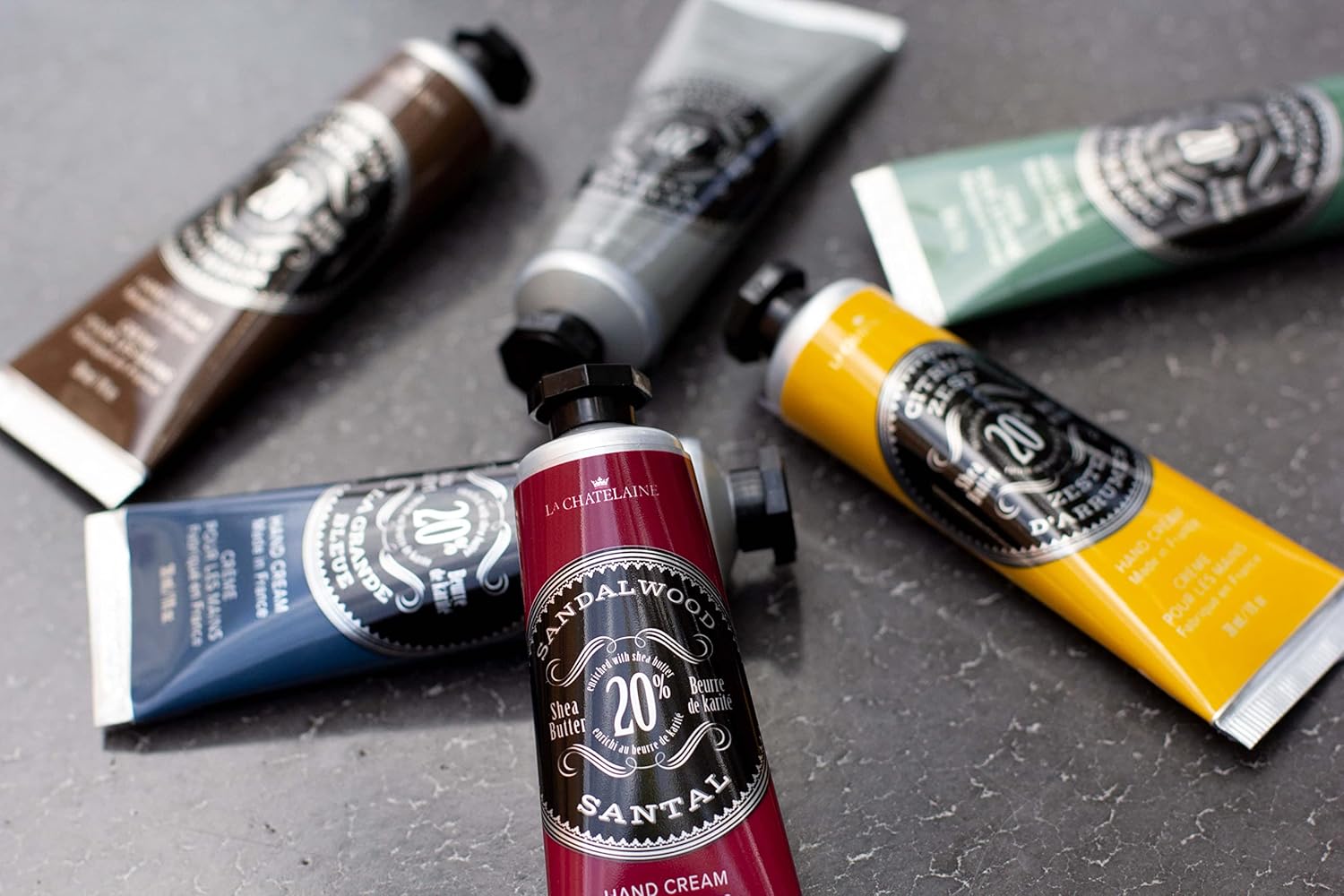 La Chatelaine Hand Cream Gift Set for Men, Ready-To-Gift Travel Size Hand Lotion, Natural Hand Cream Made in France with 20% Organic Shea Butter (Deep Blue Sea, Sandalwood, Citrus Zest) 3 x 1 fl oz