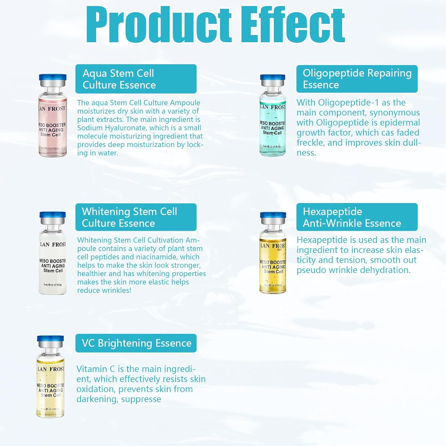 - Essence ampoule function: peptide, adenosine, niacinamide, a variety of plant extracts ingredients, repair damaged skin, skin regeneration, lifting and firming, hydration and moisturization
