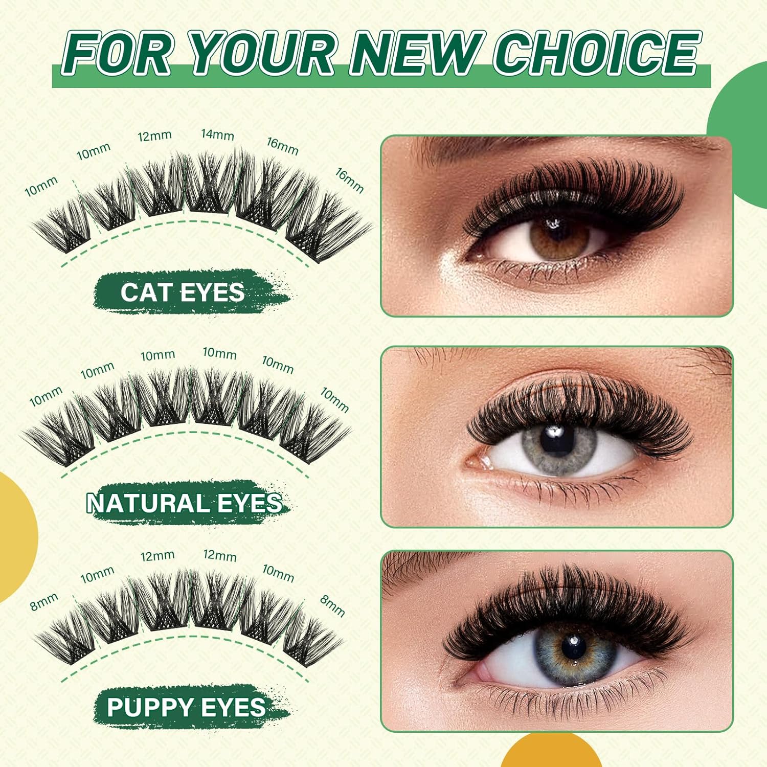 - 【144pcs High Quality Cluster Lashes】The simulated eyelash material is more realistic and will not feel plastic, comfortable and non-irritating on the eyes, allowing you to easily maintain a perfect makeup all day long.