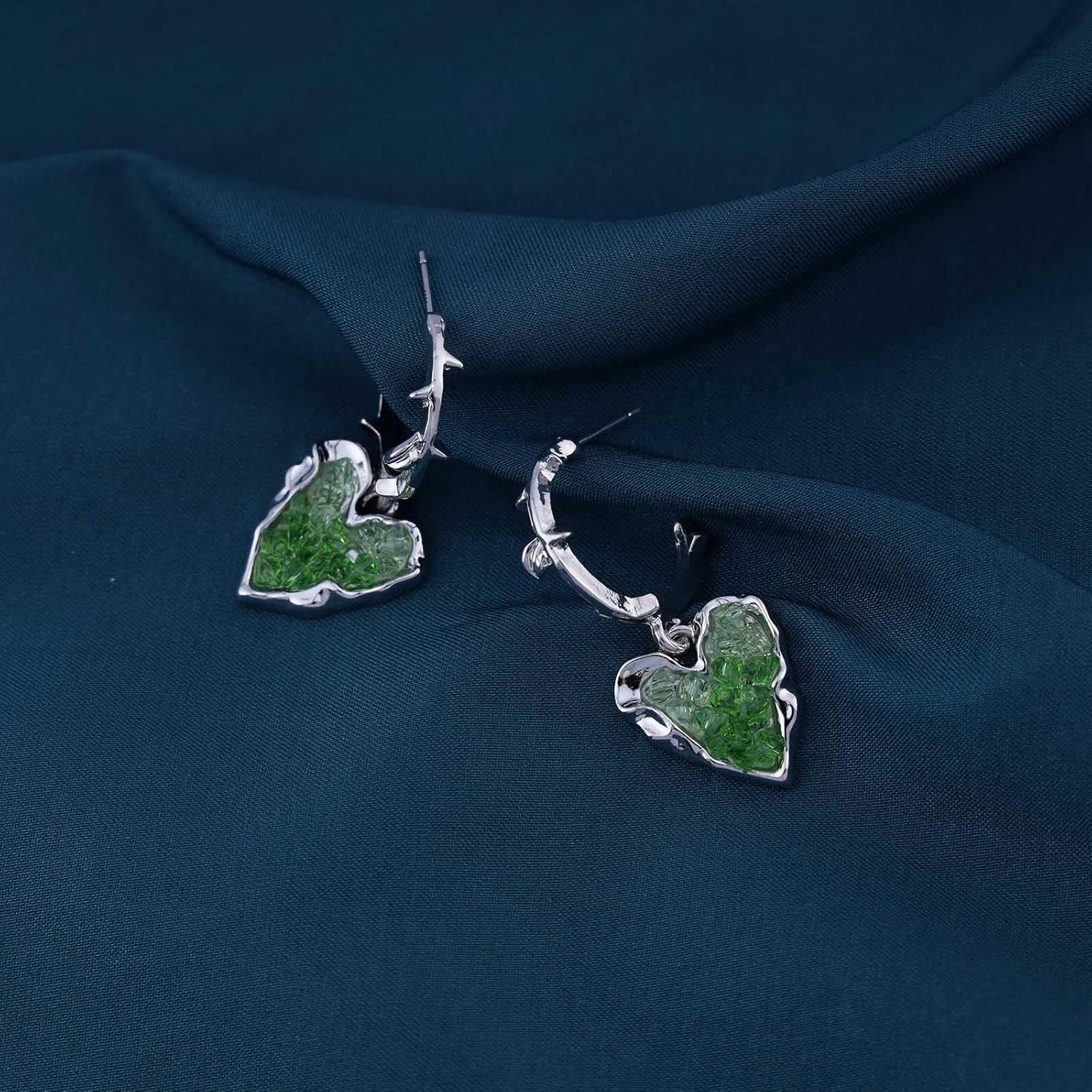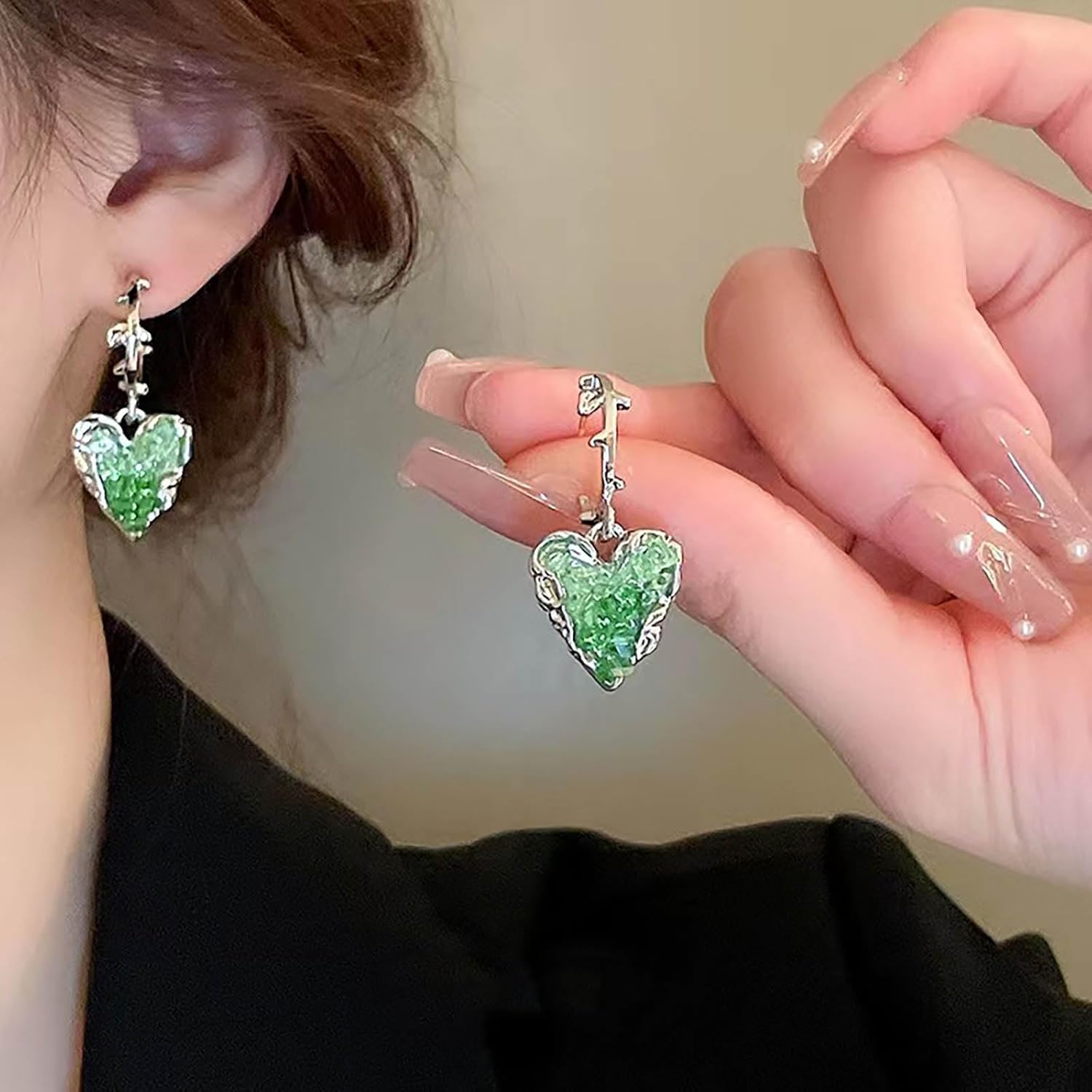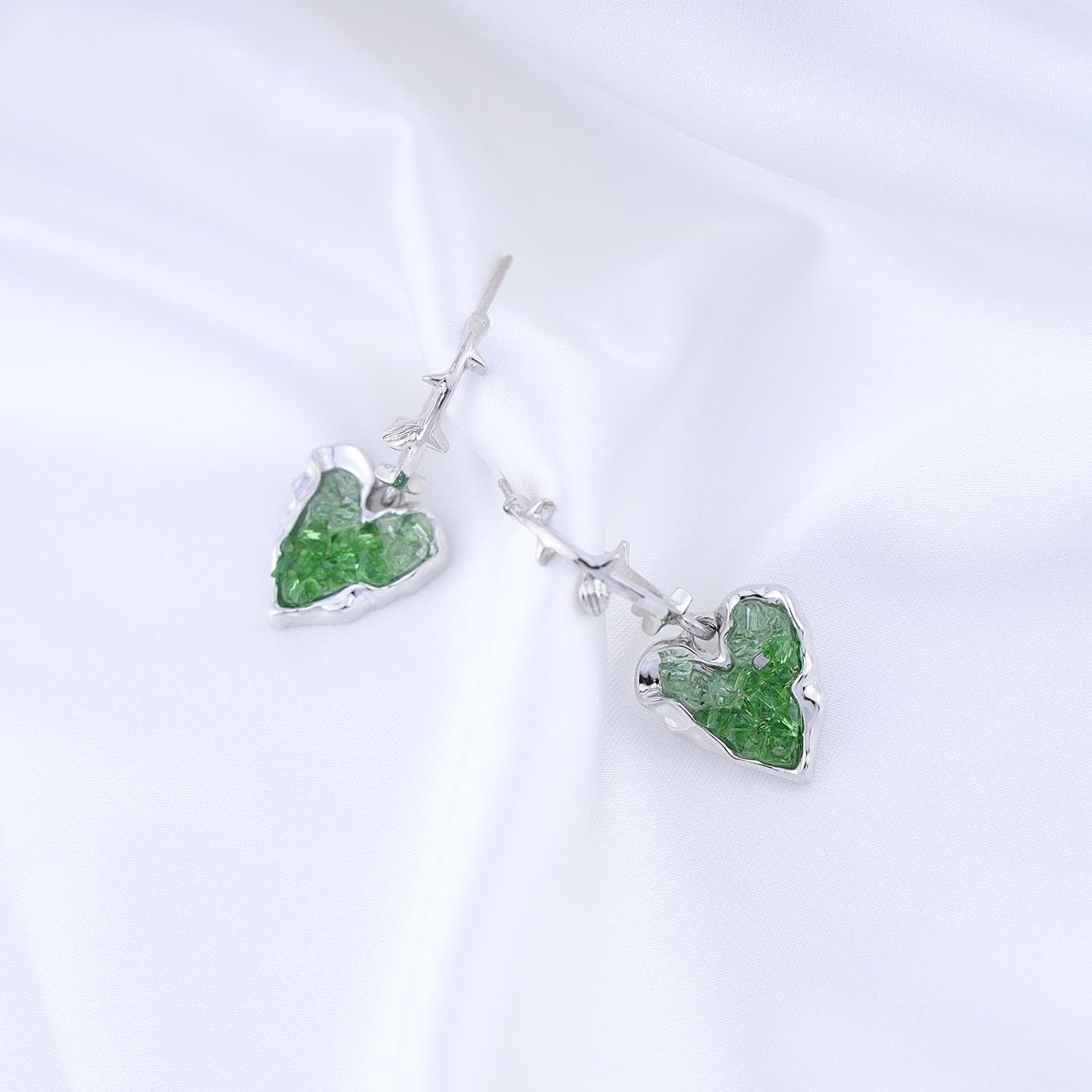 - Emerald heart drop earrings.Item Details:Handmade Item.Size:As Shown.Color:Green.Materials:Quality Alloy/Crystal.Location:Ear.Style:Boho/Vintage.
