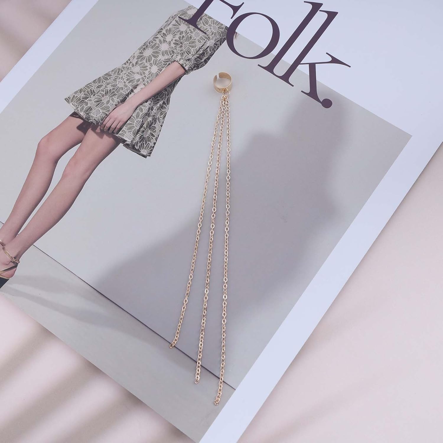 Punk Cuff Chain Dangle Earrings Long Chain Cartilage Earrings Gold Wrap Cuff Chain Earrings Vintage No Piercing Cuff Earrings Jewelry for Women