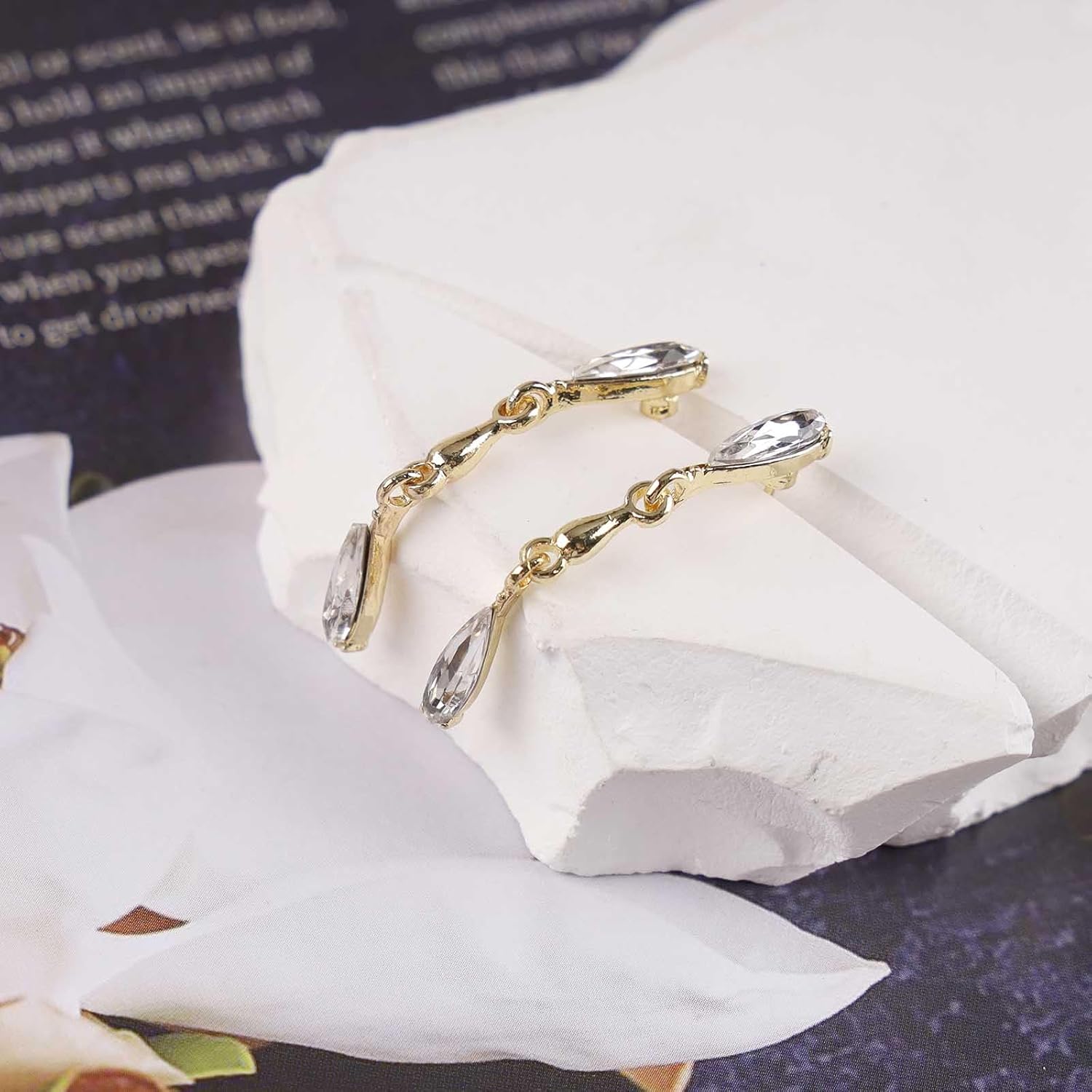 Vintage Crystal Teardrop Earrings Long Linear Rhinestone Earrings Gold Crystal Stud Earrings Sparkly Cz Bridal Earrings Jewelry for Women