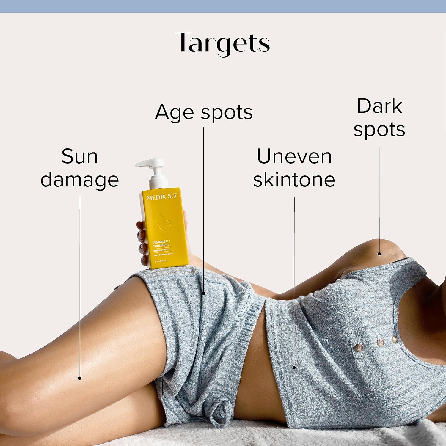 - VITAMIN C – Incorporating a Vitamin C infused body lotion into your daily skincare routine can help to promote a more healthy, radiant, & youthful-looking complexion. Vitamin C helps promote an even skin tone, while also helping stimulate collection production to improve skin elasticity + firmness. Vitamin C also helps to minimize redness or irritation in the skin, helps protect from environmental stressors like UV rays, and helps reduce the appearance of fine lines, sun damage, & wrinkles.