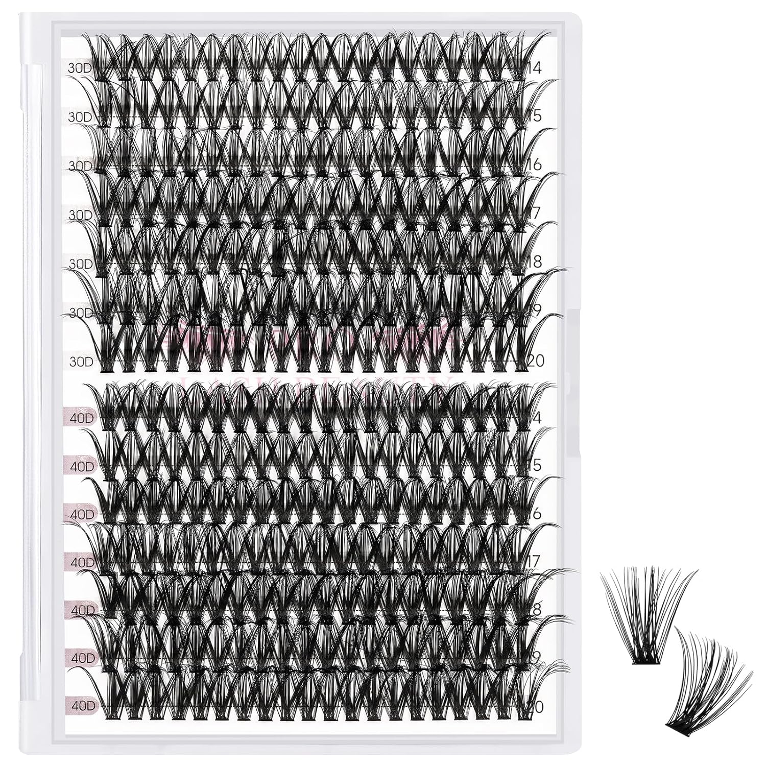 280 Pcs Individual Lashes 40D Mixed Lash Clusters 14 Rows Cluster Lashes that Look Like Eyelash Extensions DIY Lash Extension Self Application At Home (40D-D-14-20mix)