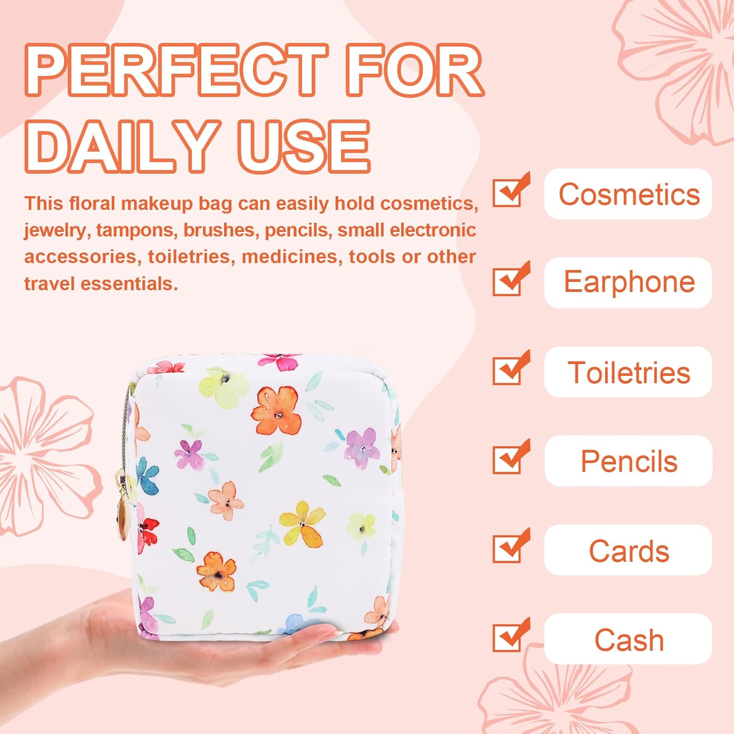 - 【Superior Quality】The floral makeup bag is made of lightweight and durable high quality nylon. It is waterproof and easy to clean, helping to protect your cosmetics and toiletries from water spill accidents.