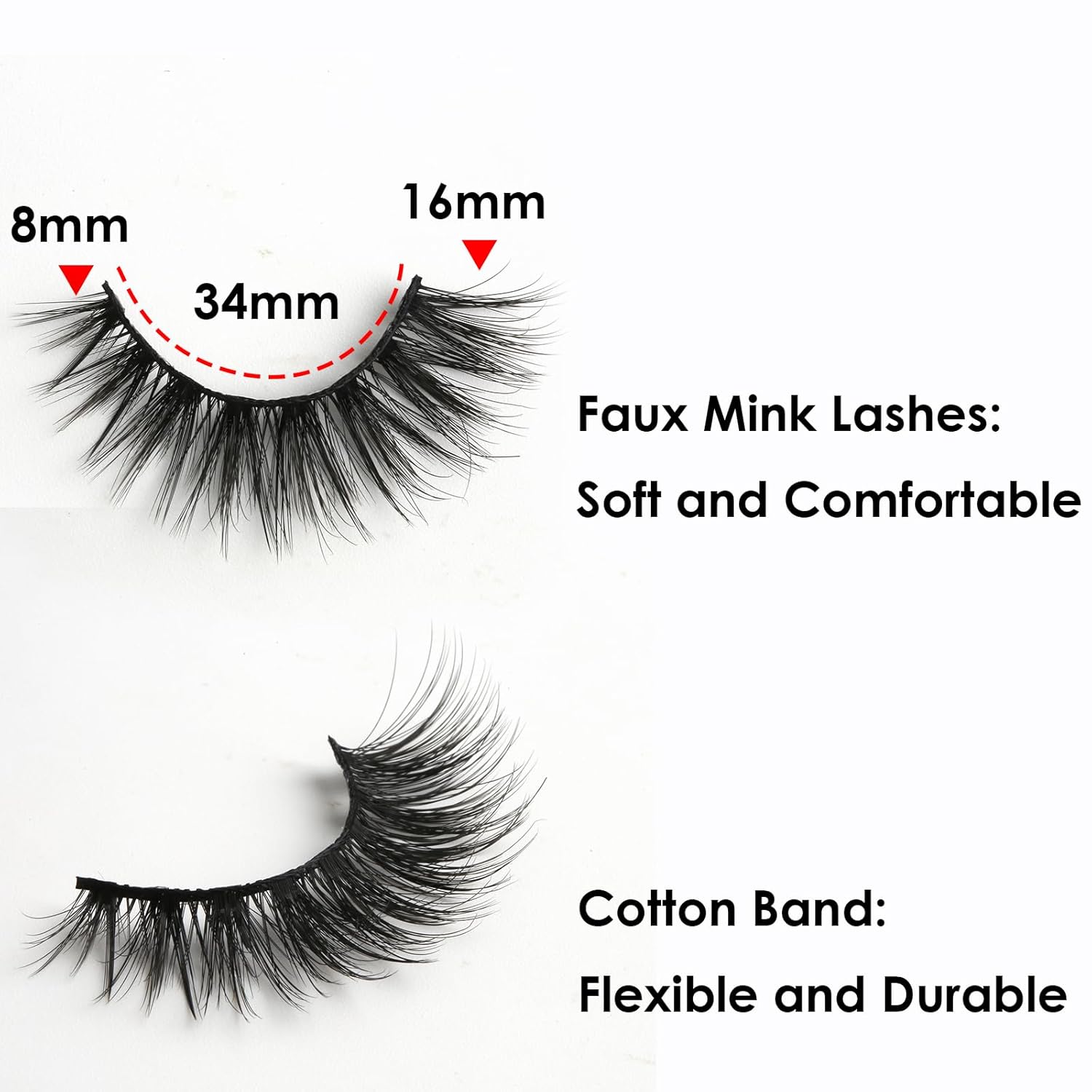 SUNWELL False Eyelashes 16mm Mink Lashes Cat Eye Lashes Strips 8D Fluffy Faux Mink Lashes Soft Wispy Luxury Volume Fake Lashes 10 Pairs Pack