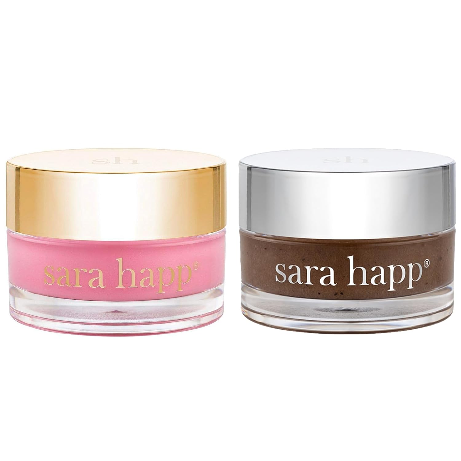 Sara Happ Sweet Clay Mask + Vanilla Bean Sugar Lip Scrub Duo - Exfoliating Lip Treatments, Moisturizers for Dry and Flaky Lips, Vegan (0.47 Oz and 0.5 Oz jars)