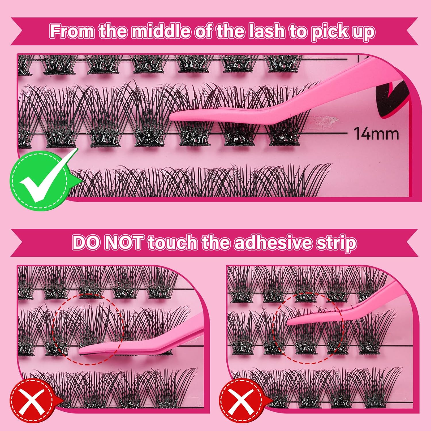 - Reusable Self Adhesive:DIY Self-adhesive eyelash extension kit includes 48pcs self stick cluster lashes 10-18mm mixed length and 1 lash tweezers. And these reusable self adhesive lash clusters can be used many times with proper care.You can choose the right combination of lengths to suit your needs.