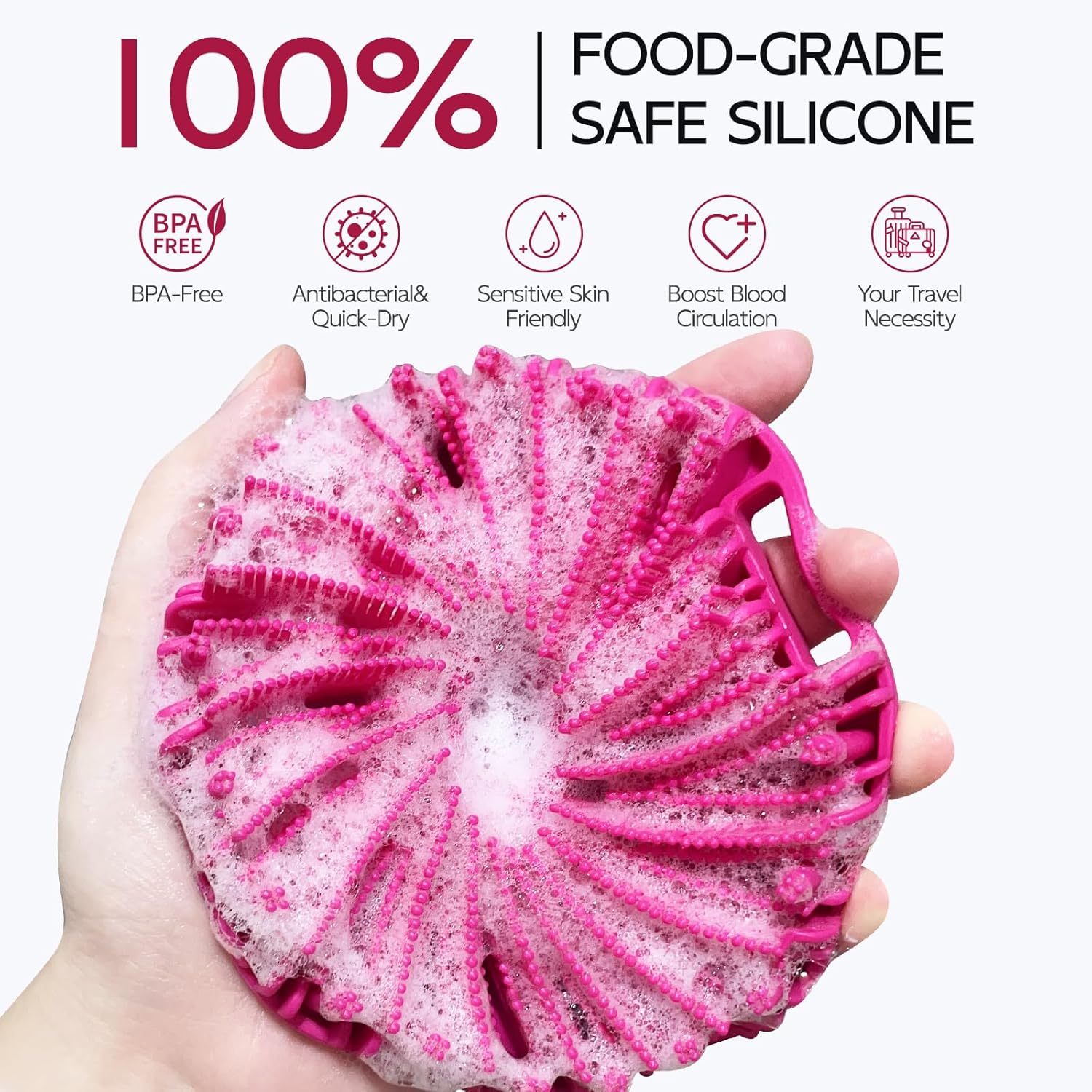 - ECO-FRIENDLY SILICONE: Crafted from safe and durable food-grade silicone, our body bath scrubber is gentle on your skin while still offering effective exfoliation and cleansing.